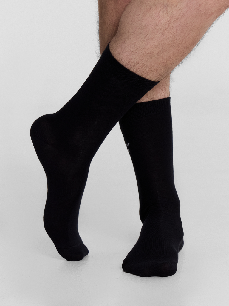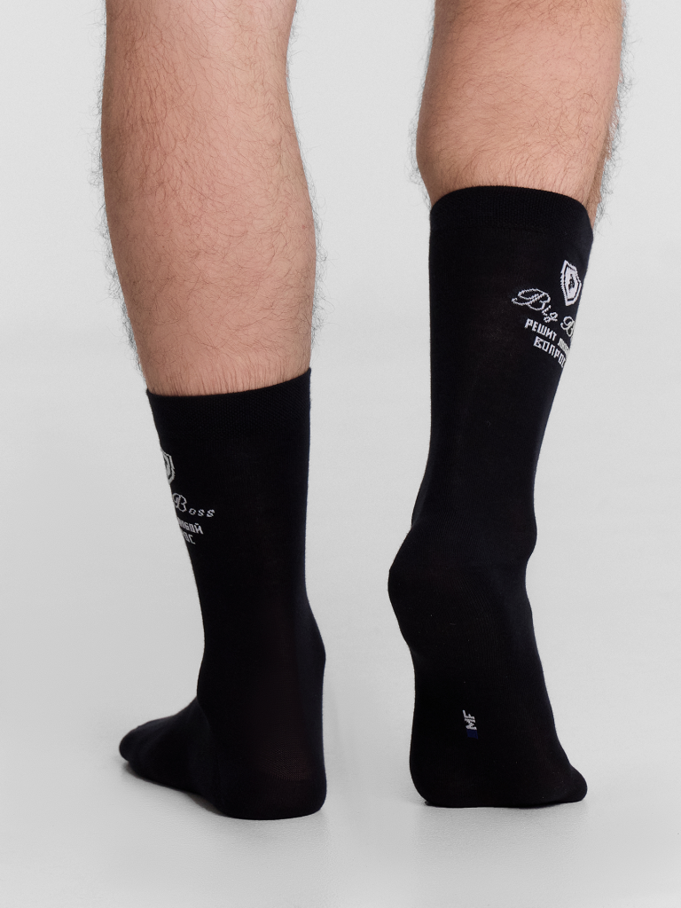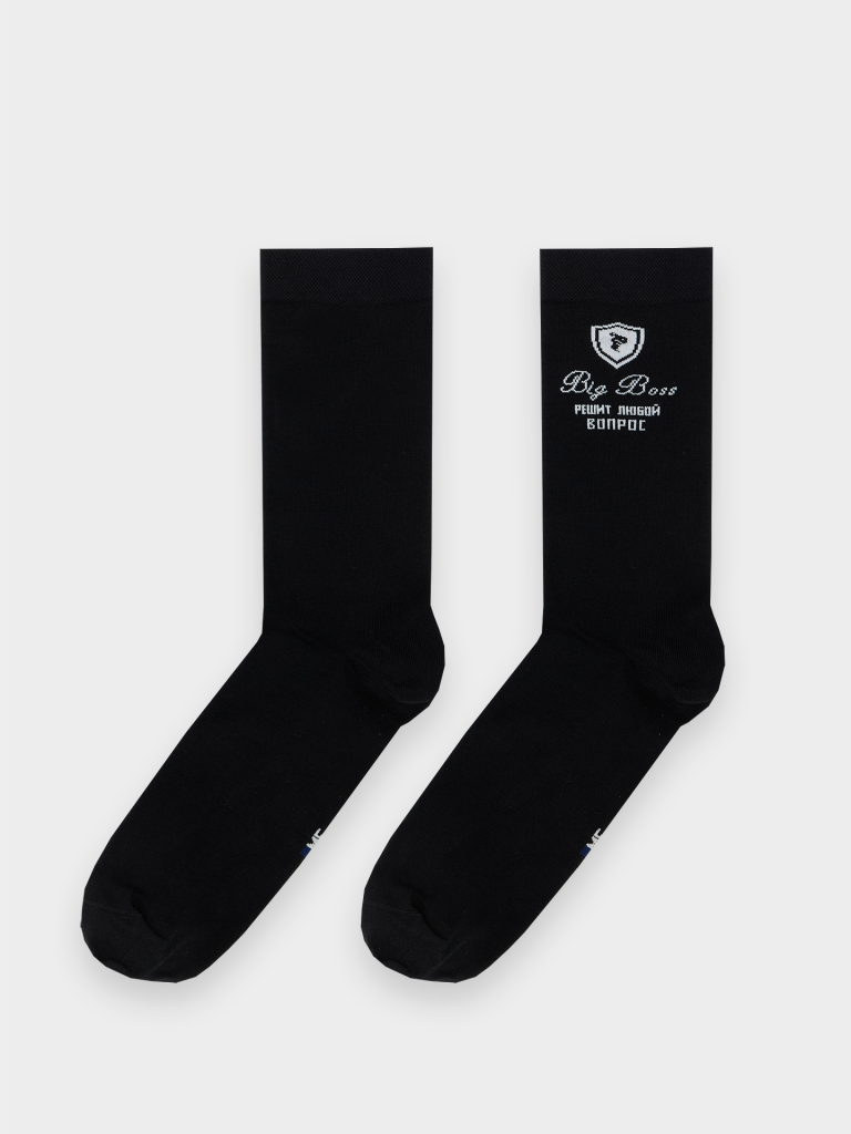 рис.3025 Мужской носок классический, высокий, с рисунком в виде эмблемы и надписью "BIG BOSS, решит любой вопрос".