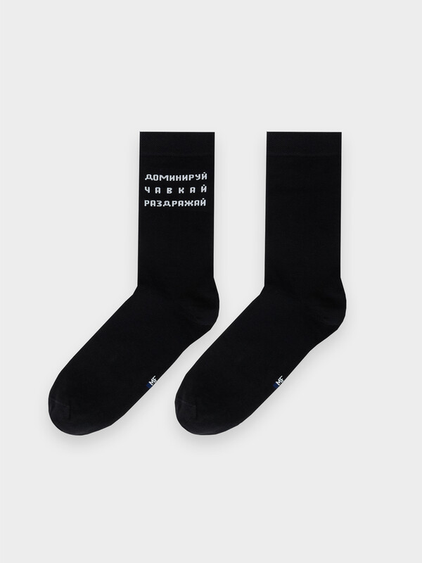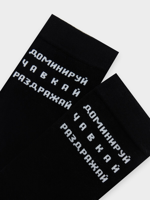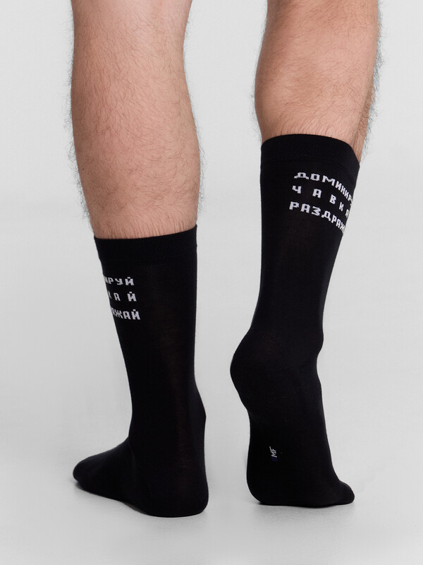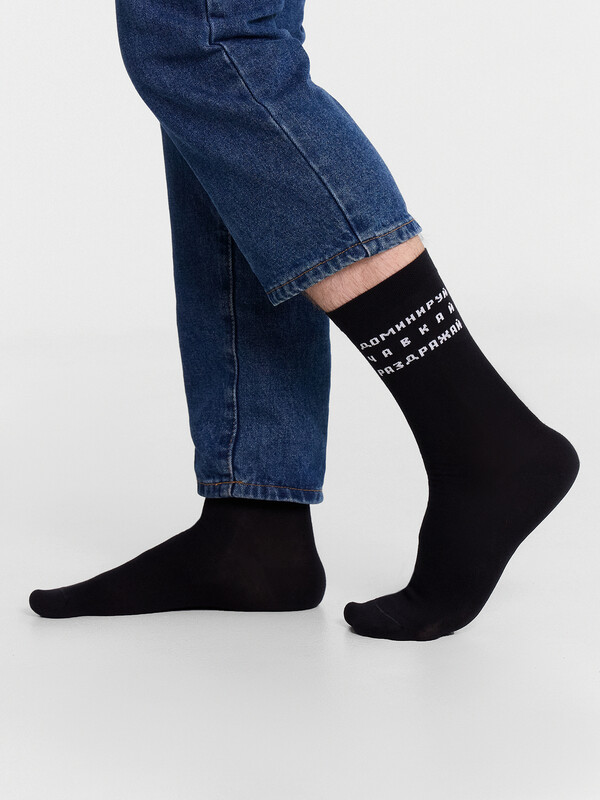 Высокие мужские носки с надписью "Доминируй...". Модель выполнена из гребенного хлопка. Мягкость, тонкость и прочность пряжи обеспечивают комфорт в течение всего дня. Натуральные волокна пропускают воздух и впитывают влагу, позволяя коже дышать. Добавление небольшого количества эластана гарантирует хорошее облегание стопы и сохранение формы изделия даже после множества стирок. Мягкая эластичная резинка надежно удерживает носки на ноге, не создавая дискомфорта. А усиленные пятка и мысок увеличивают защиту от протирания и повышают износостойкость. Рекомендуем!
