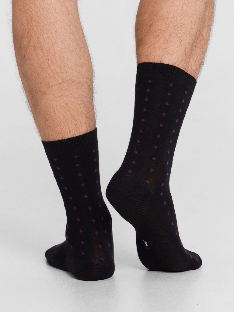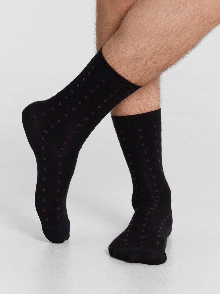 рис.3075 Мужской носок классический, высокий, с рисунком в виде мелких ромбиков.