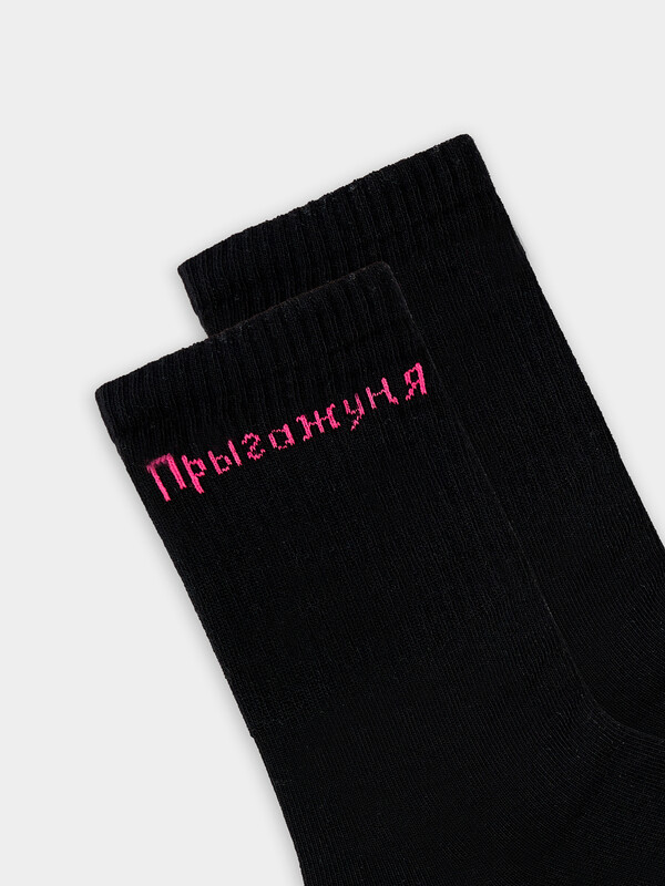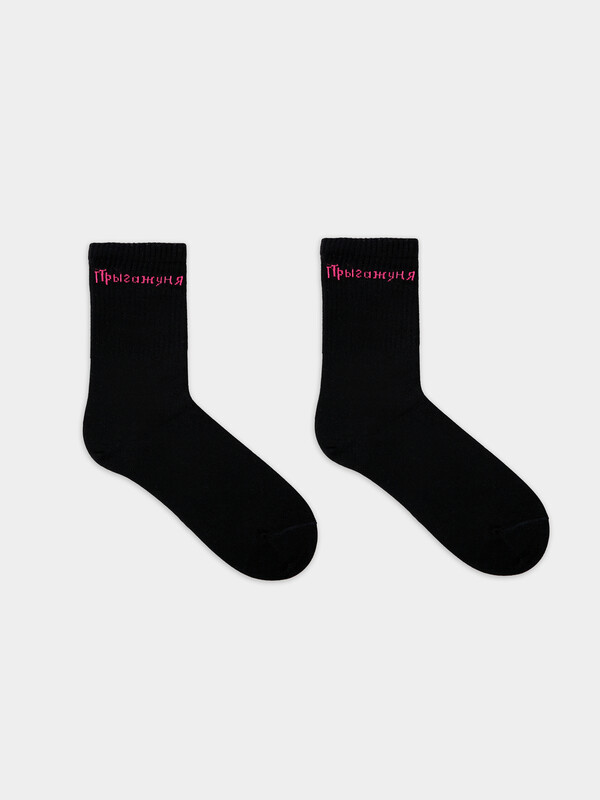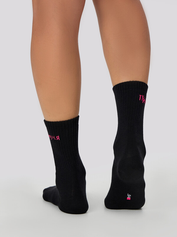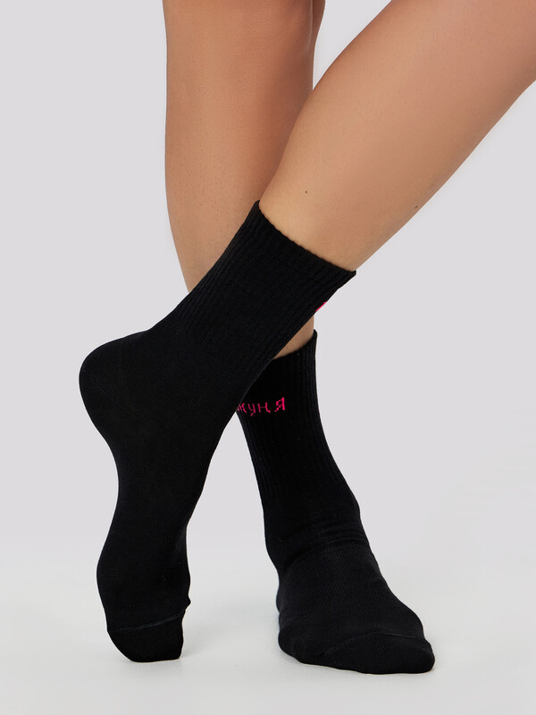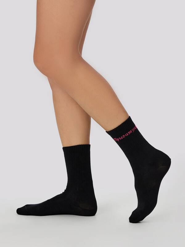 рис.3332 Женские носки высокие с плотным бортом и рисунком в виде надписи "Прыгажуня",