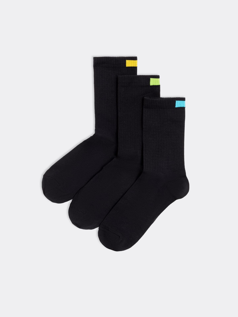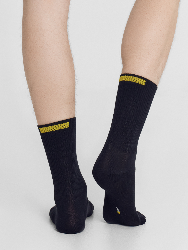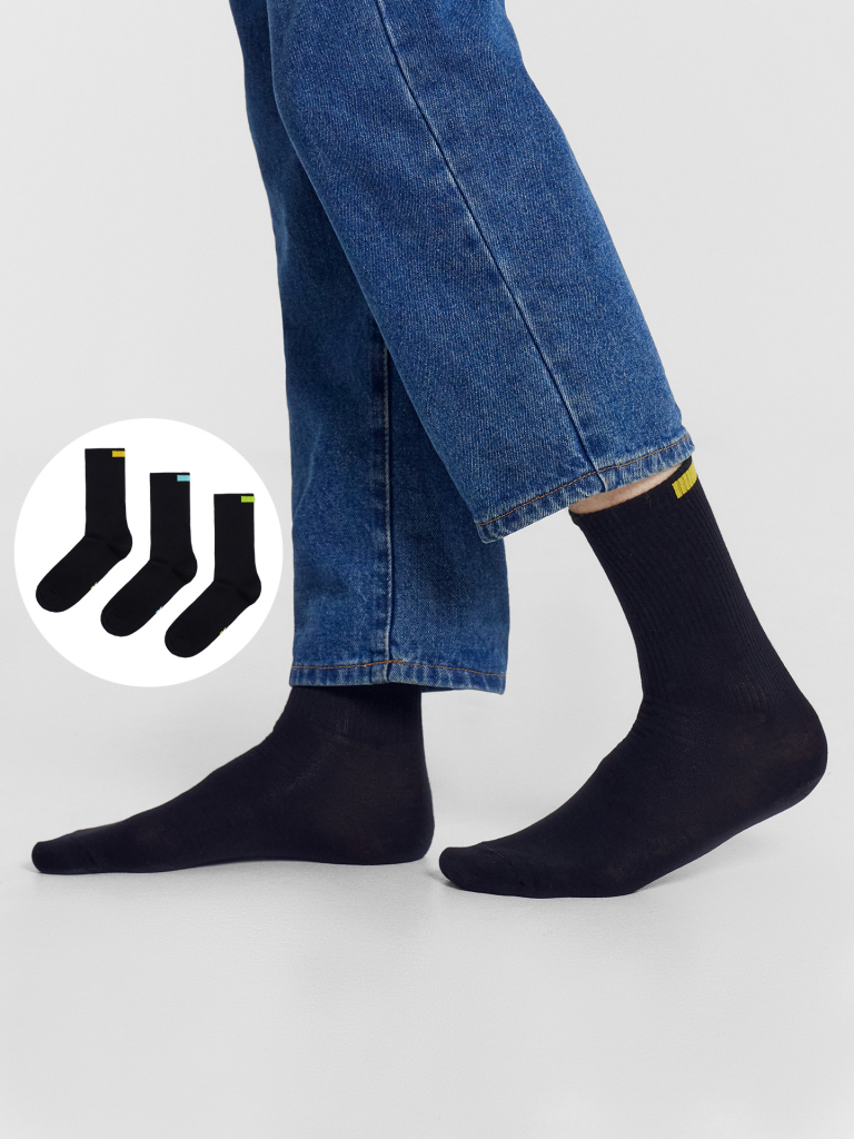 Рис.1916 Мультипак из трех пар мужских носков классических высокий с плотным бортом и рисунком в виде прямоугольника на бортике.