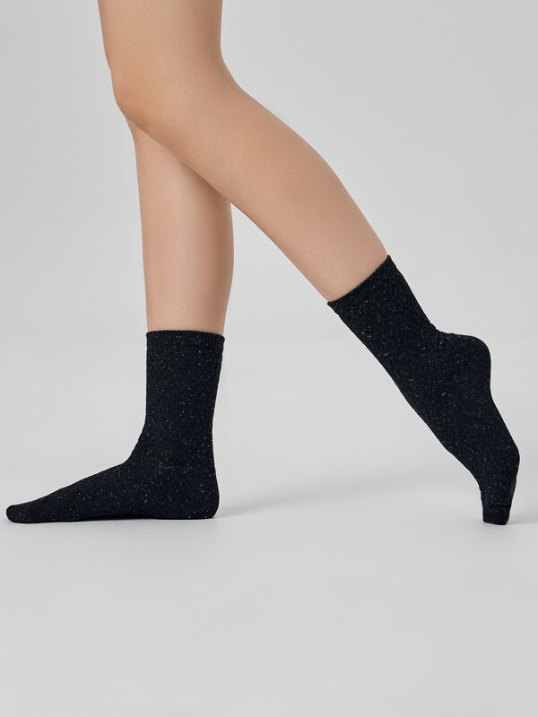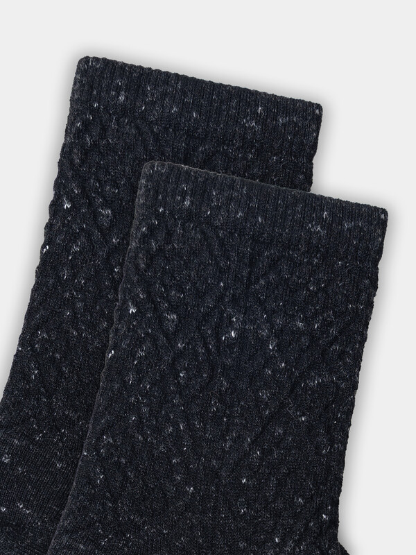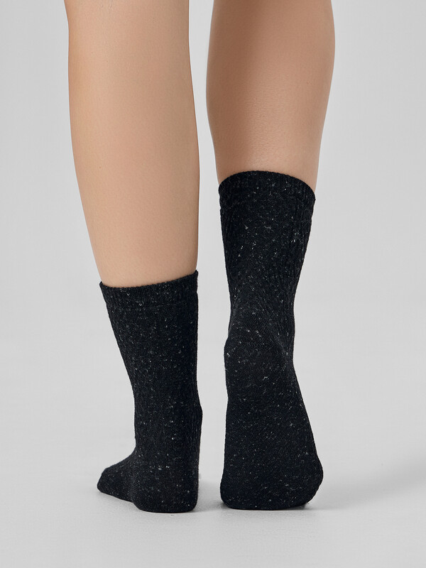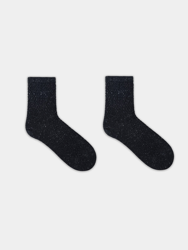 рис.3369 Женские, классические носки с рисунком в виде рельефного, объемного переплетения из смешанной пряжи с содержанием шерсти и льна.