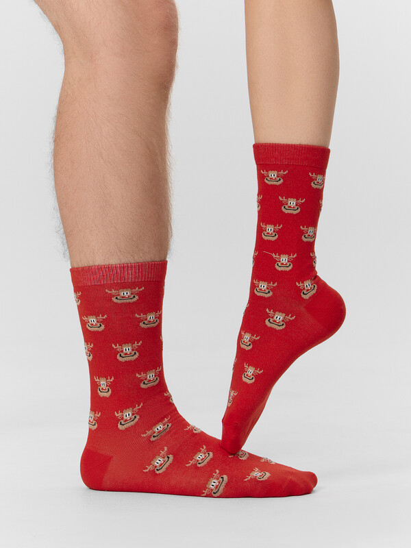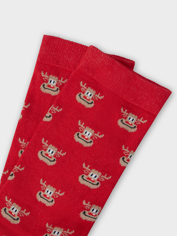 рис.2990 Носки унисекс классические, гладкие с рисунком в виде оленей по всему носку.