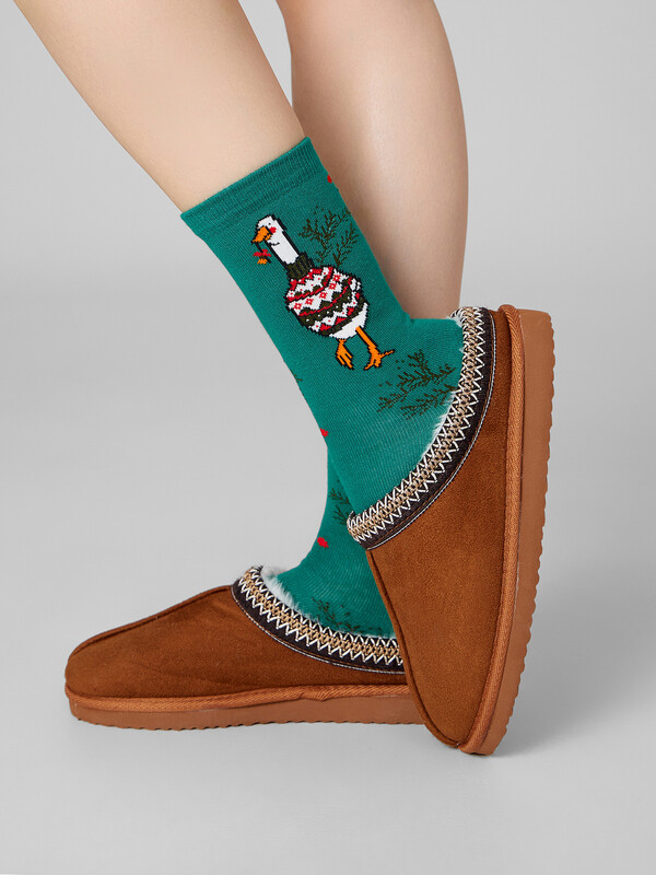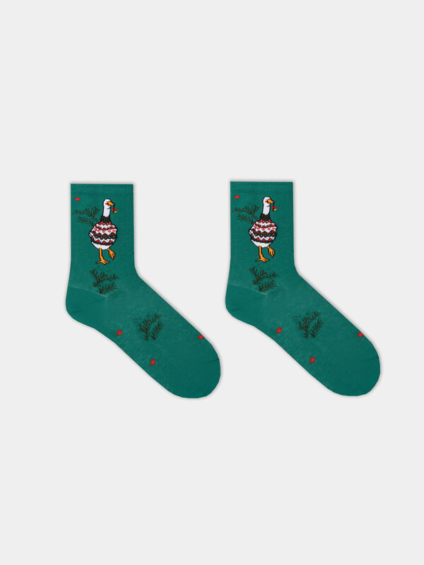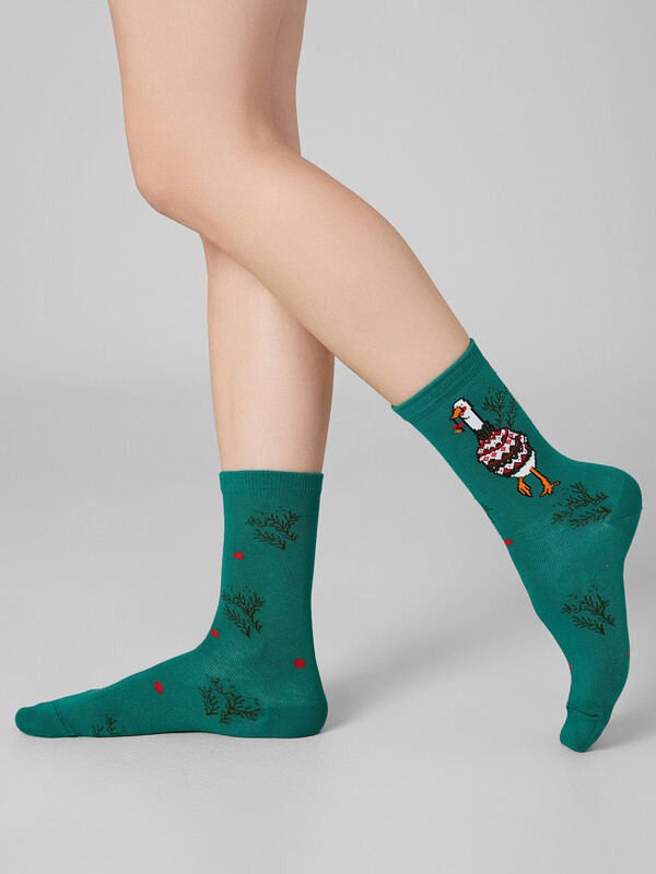 рис.3431 Женские классические носки с рисунком в виде гуся и еловых лапок.