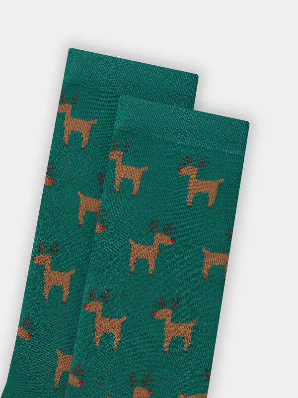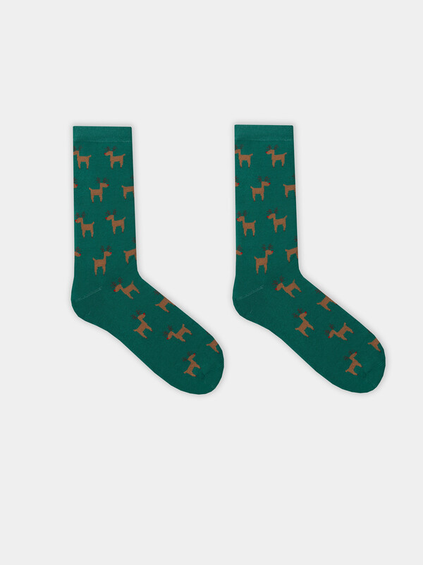 рис.2594 Носки унисекс классические, махровые с рисунком в виде оленей