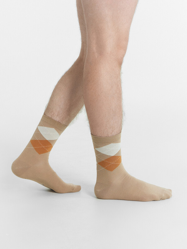Носки мужские классические высокие с рисунком в виде ромбов - базовый элемент мужского гардероба. Мужские повседневные носки мы изготавливаем из гребенного хлопка высочайшего качества - тонкого, прочного и долговечного. Волокна хлопка отлично пропускают воздух, позволяют коже дышать и впитывают влагу. Именно поэтому классические мужские носки дарят ощущение комфорта и свежести в течение всего дня. Благодаря небольшому количеству эластана в составе, носки мужские хорошо облегают стопу и сохраняют форму даже после множества стирок. Пятка и мысок усилены, носки будут носиться дольше. Мягкая эластичная резинка не препятствует кровообращению и равномерно распределяет давление: носки надежно держатся на ноге, не сползают как носки без резинки мужские. Общеизвестно, что носки мужские черные являются наиболее популярными и востребованными, но в ассортименте белорусского бренда Mark Formelle представлены и другие базовые расцветки: есть и мужские серые носки, и модели в синем, коричневом, желтом, оливковом цветах, а также огромный выбор носков с оригинальными дизайнерскими решениями и рисунками.
