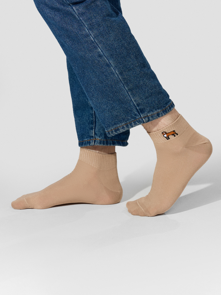 рис.3093 Укороченные мужские носки с рисунком в виде пса на бортике.