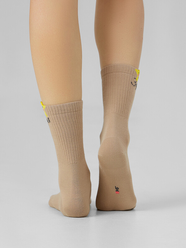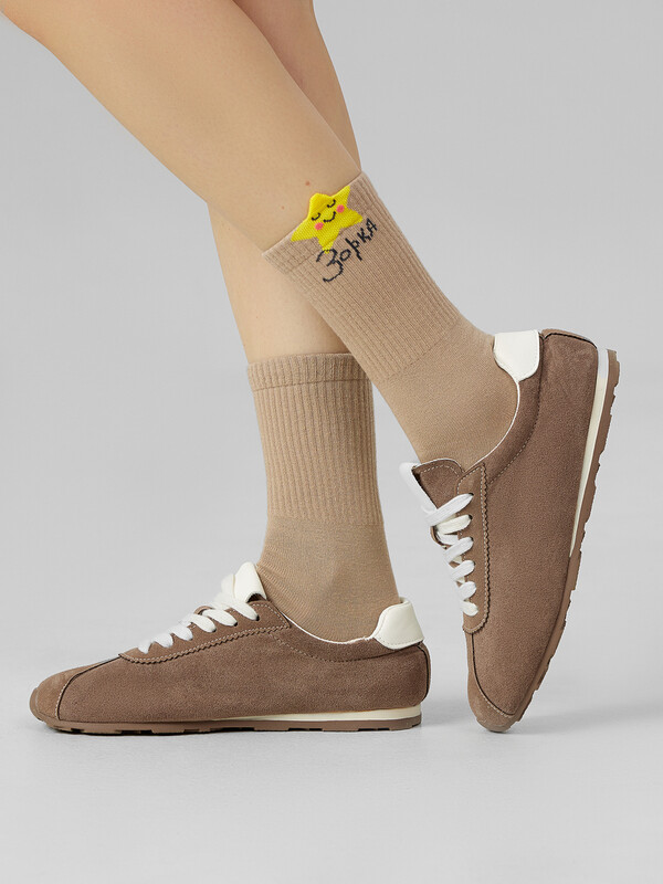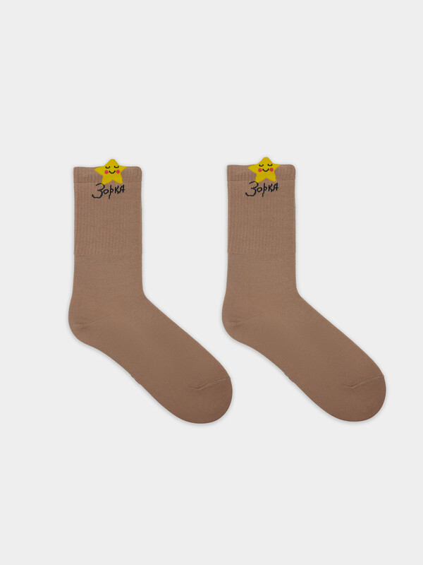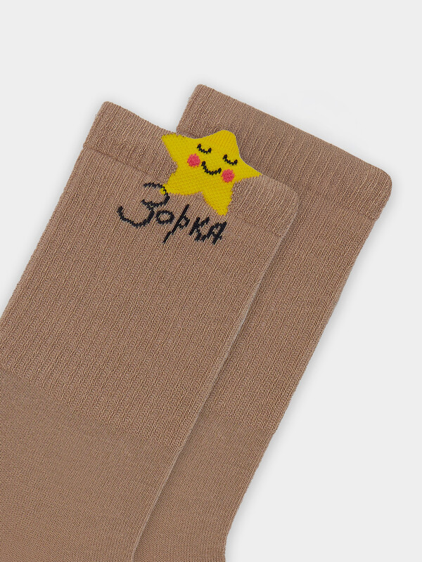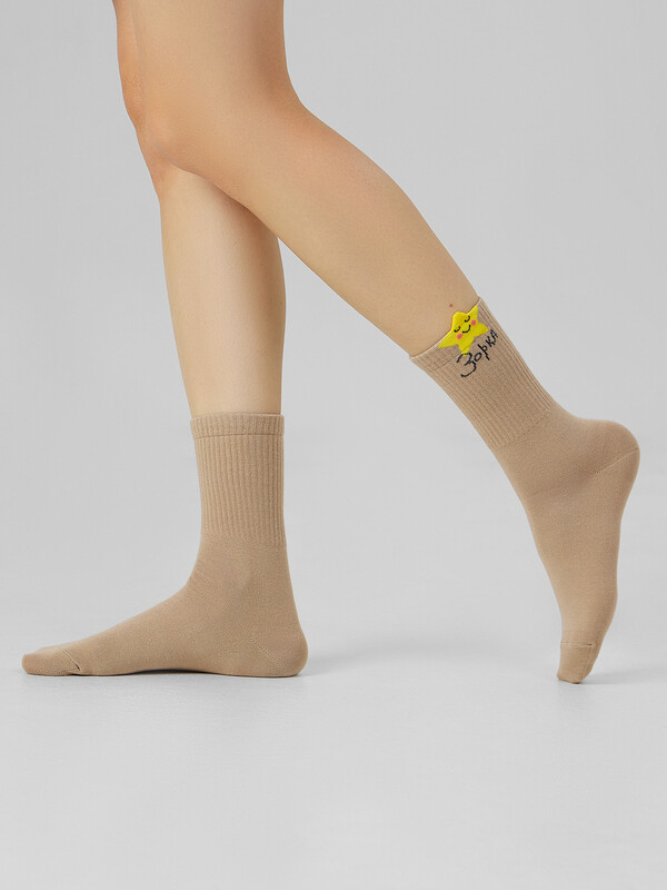 рис.3328 Женские носки высокие с плотным бортом с 3Д рисунком в виде звездочки и надписью "Зорка".