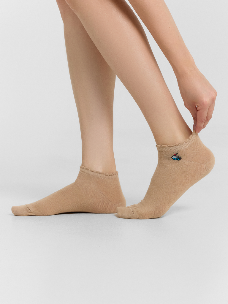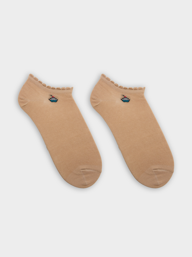 рис.1982 Женские носки укороченные с пикотом на борту и рисунком в виде пироженки.
