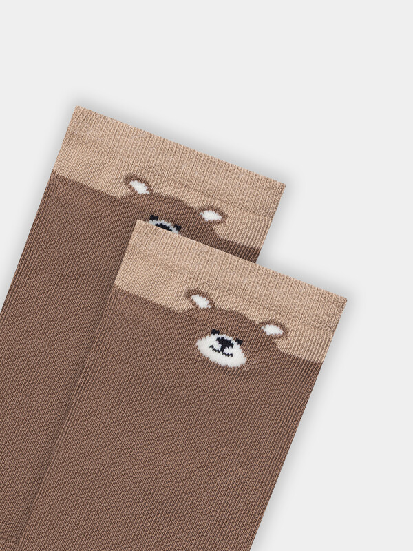 рис.3181 Детский укороченный носок с рисунком в виде двух цветов основы и мишки.