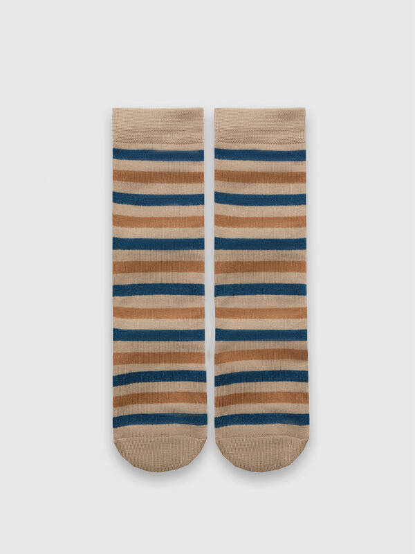 рис.2927 Детский классический носок с плюшевым следом и рисунком в виде полосок.