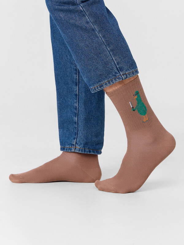 Носки мужские классические высокие с плотным бортом и рисунком в виде гуся - отличная возможность внести разнообразие и поднять настроение в праздники и в обычный будний день. Длинные мужские носки с принтом изготовлены из гребенного хлопка - пряжи высочайшего качества, мягкой, тонкой, но прочной.