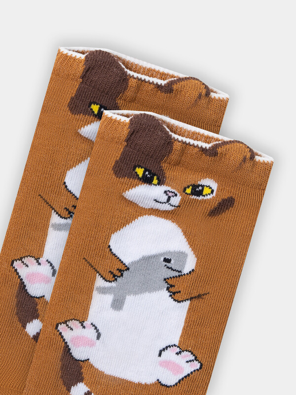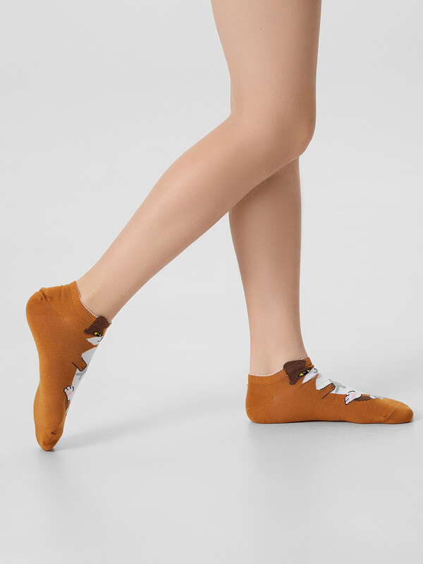 рис.3183 Детский укороченный носок с рисунком в виде котика.