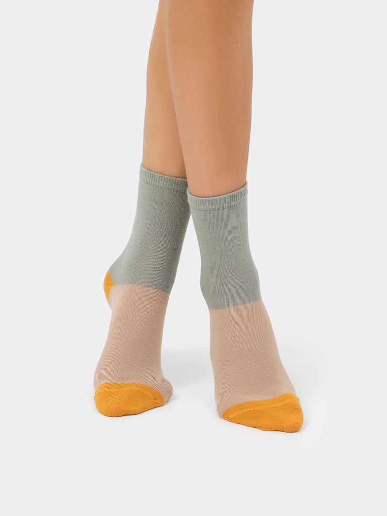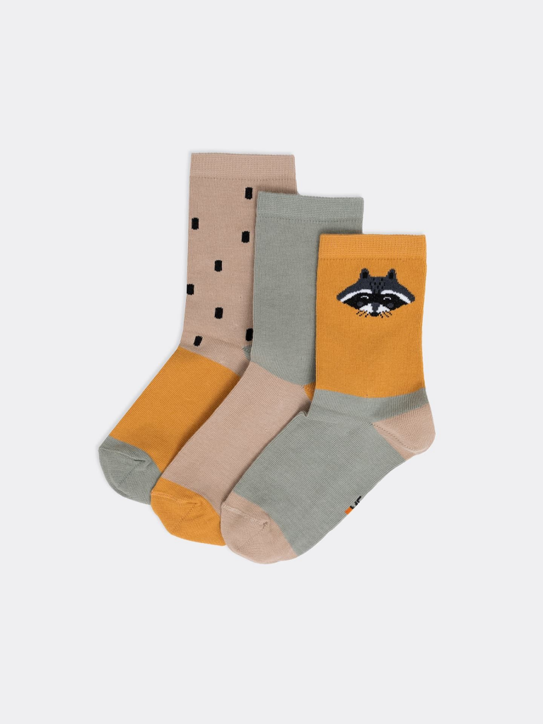 рис.2071 Мультипак из гладких детских носков с рисунком в виде енота и черточек.