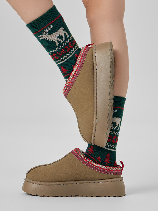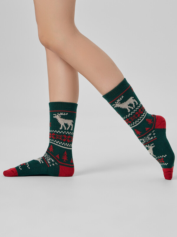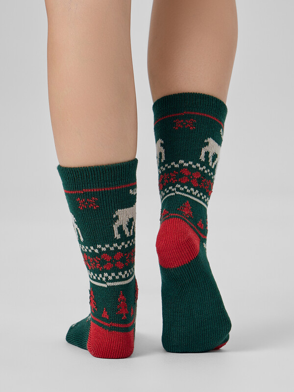 Длинные женские шерстяные носки с новогодним дизайном - незаменимая вещь в гардеробе, самостоятельный стильный атрибут и возможность расставить акценты в любом модном образе. Носки теплые женские изготовлены из гребенного хлопка с добавлением шерсти - пряжи высочайшего качества, прочной и долговечной. Натуральные волокна отлично пропускают воздух, позволяя коже дышать, и впитывают влагу, поэтому носки теплые женские дарят ощущение комфорта в течение всего дня. Пятка и мысок усилены для защиты от протирания. Мягкая эластичная резинка не препятствует кровообращению и равномерно распределяет давление: носки надежно держатся на ноге, не сползают.
