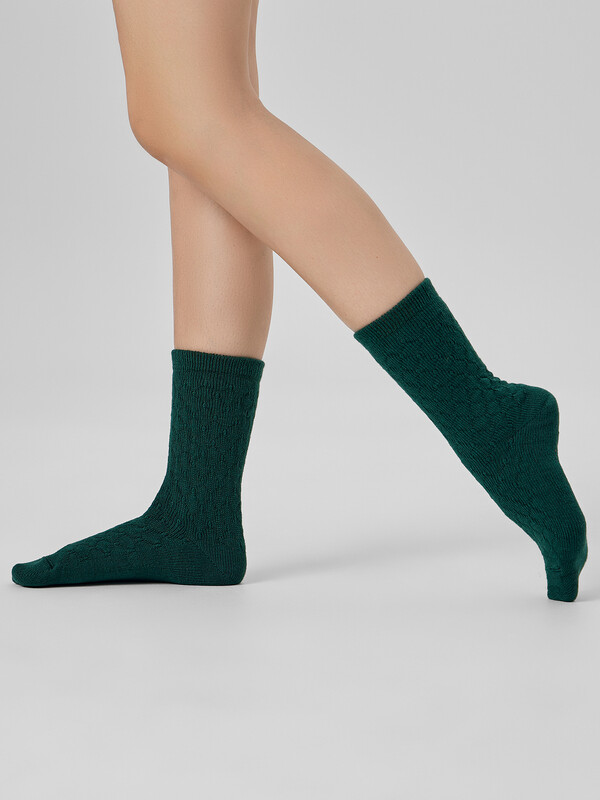 Высокие носки женские шерстяные с текстурой объемных ромбиков. Выполнены из высококачественного гребенного хлопка — тонкого, прочного и эластичного. Натуральные волокна отлично пропускают воздух и впитывают влагу, обеспечивают ощущение комфорта в течение дня. Благодаря небольшому количеству эластана в составе, носочки хорошо облегают и сохраняют форму, практичны и долговечны. Пятка и мысок дополнительно усилены для защиты от протирания при активном движении. Резинка мягко, но надежно удерживает носки, не передавливая ногу и не оставляя на коже следов. Отличный вариант для зимних дней и новогодних праздников. Нежные, достаточно теплые и мягкие, создадут атмосферу тепла и уюта. Порадуйте себя и своих близких прекрасными носочками от Mark Formelle!