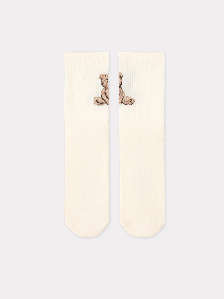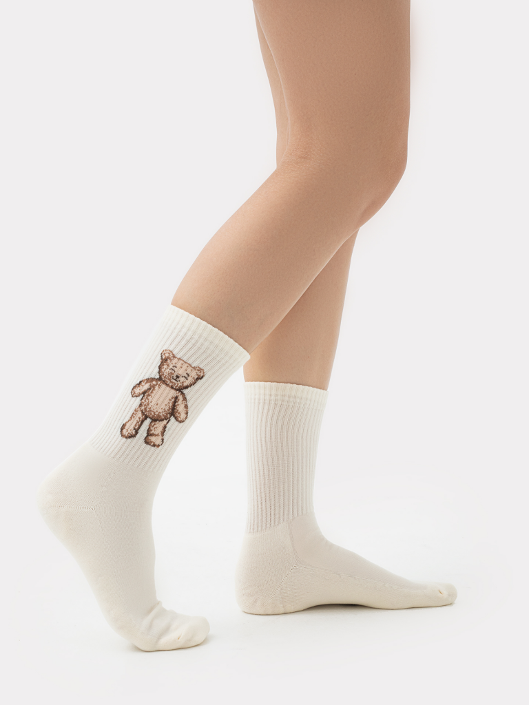 Высокие классические носки женские с плотным бортом, плюшевым следом и рисунком в виде медвежат. Выполнены из высококачественного гребенного хлопка — тонкого, прочного и эластичного. Натуральные волокна отлично пропускают воздух и впитывают влагу, обеспечивают ощущение комфорта в течение дня. Благодаря небольшому количеству эластана в составе, носочки хорошо облегают и сохраняют форму, практичны и долговечны. Пятка и мысок дополнительно усилены для защиты от протирания при активном движении. Резинка мягко, но надежно удерживает носки, не передавливая ногу и не оставляя на коже следов. Отличный вариант для зимних дней и новогодних праздников. Нежные, достаточно теплые и мягкие, создадут атмосферу тепла и уюта. Порадуйте себя и своих близких прекрасными носочками от Mark Formelle!