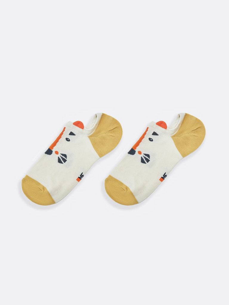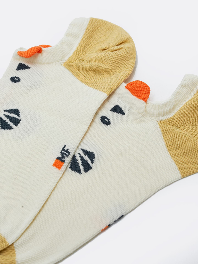 рис.1957 Детский носок гладкий суперкороткий с рисунком в виде тигриной мордочки и 3D рисунком.