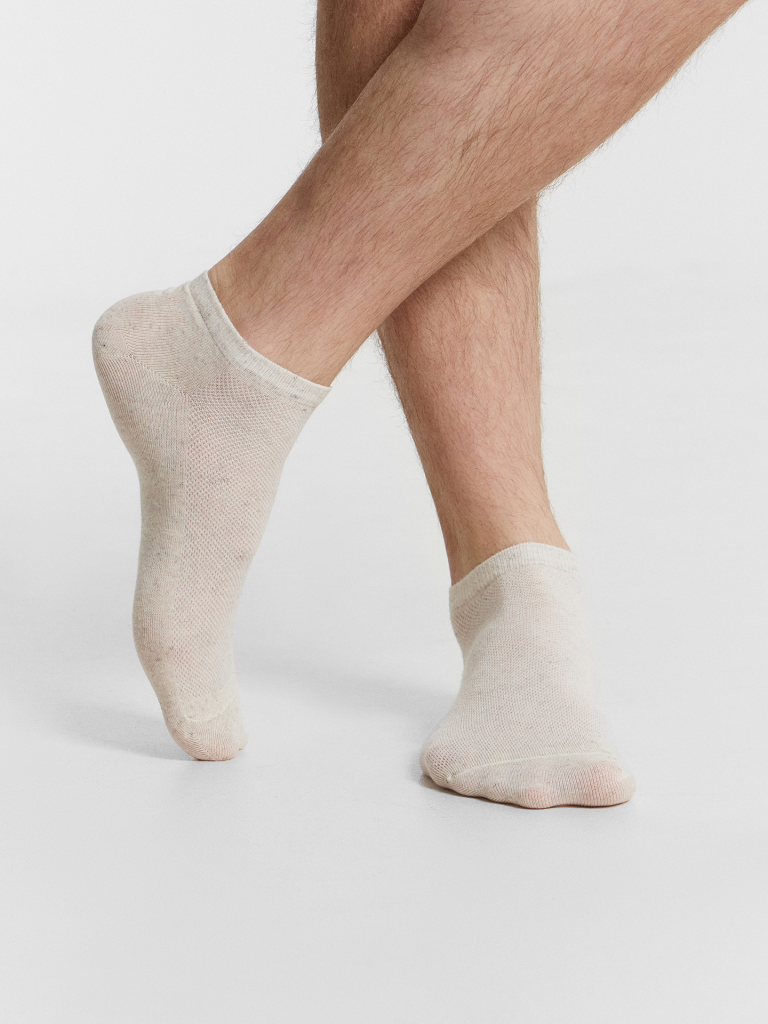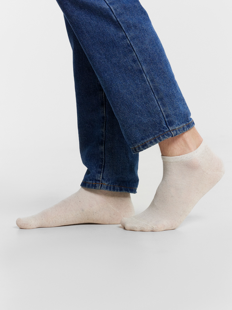 Эти мужские носки покоряют комфортом и воздухопроницаемостью! Модель с U-образной пяткой и сетчатой вставкой обеспечивает удобную посадку и свободу движений. Выполненные из натурального хлопка и льна, они обладают мягкостью, отличной гигроскопичностью и повышенной прочностью, создавая оптимальный микроклимат для стопы. Благодаря сетчатой структуре в передней части носки отлично пропускают воздух, предотвращая перегрев и обеспечивая ощущение свежести в течение дня. Эластичный материал гарантирует надежную фиксацию, а усиленные зоны повышают долговечность, делая этот аксессуар практичным решением для повседневной носки. Идеальный выбор для тех, кто ценит натуральные ткани и комфорт в каждой детали!