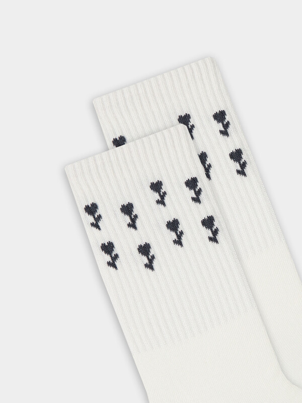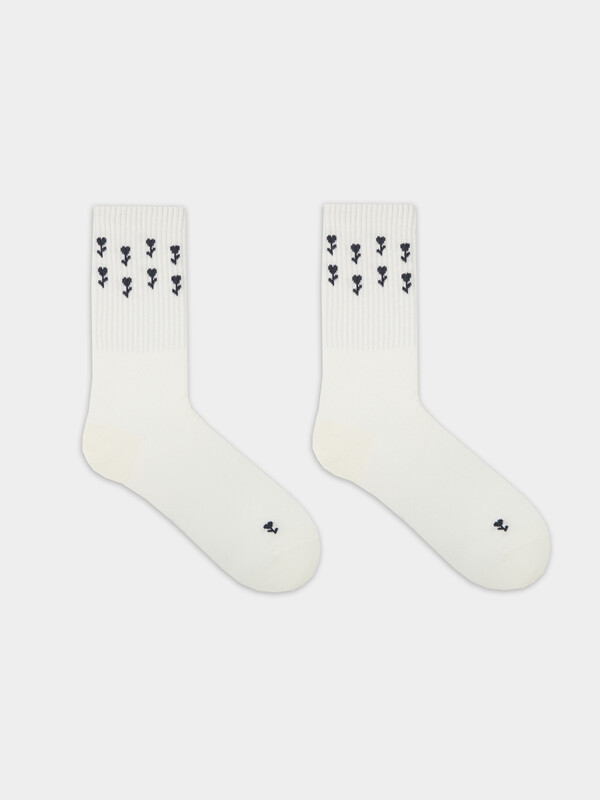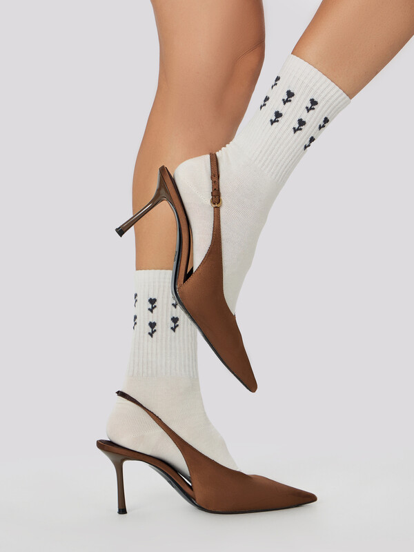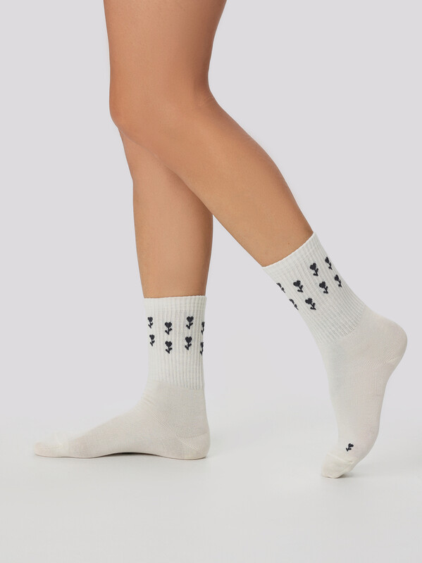 рис.3326 Женские носки высокие с плотным бортом и рисунком в виде цветов.