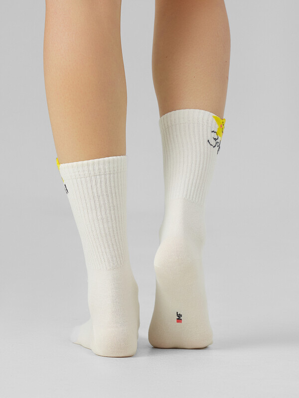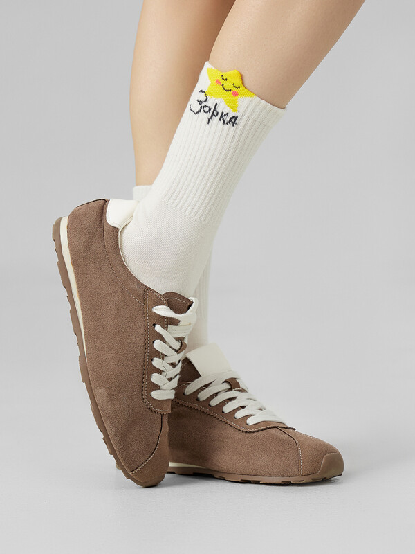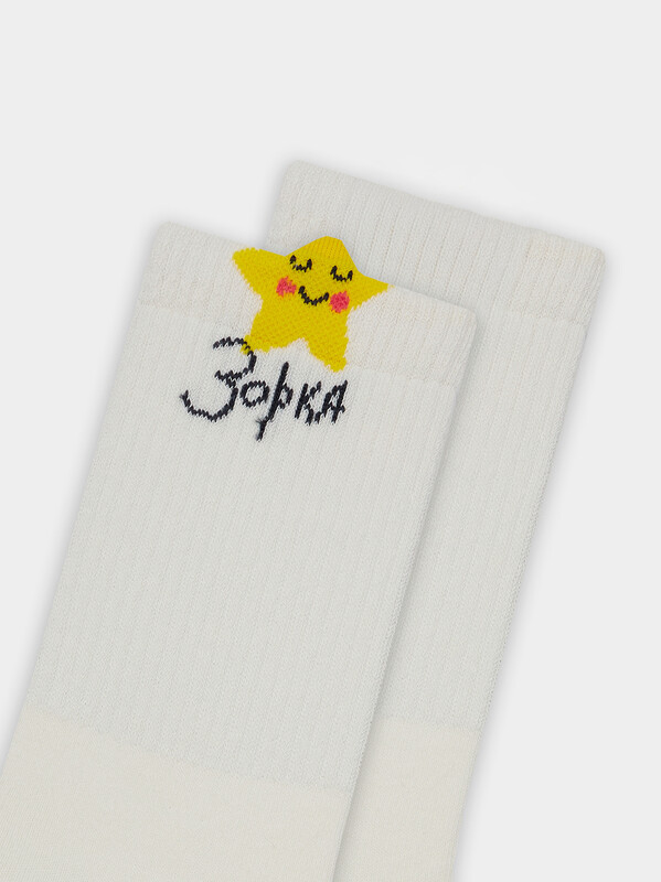 рис.3328 Женские носки высокие с плотным бортом с 3Д рисунком в виде звездочки и надписью "Зорка".
