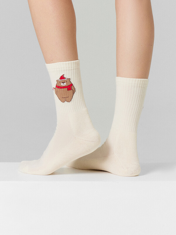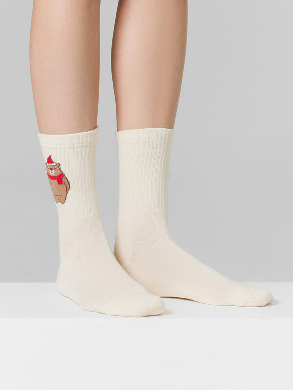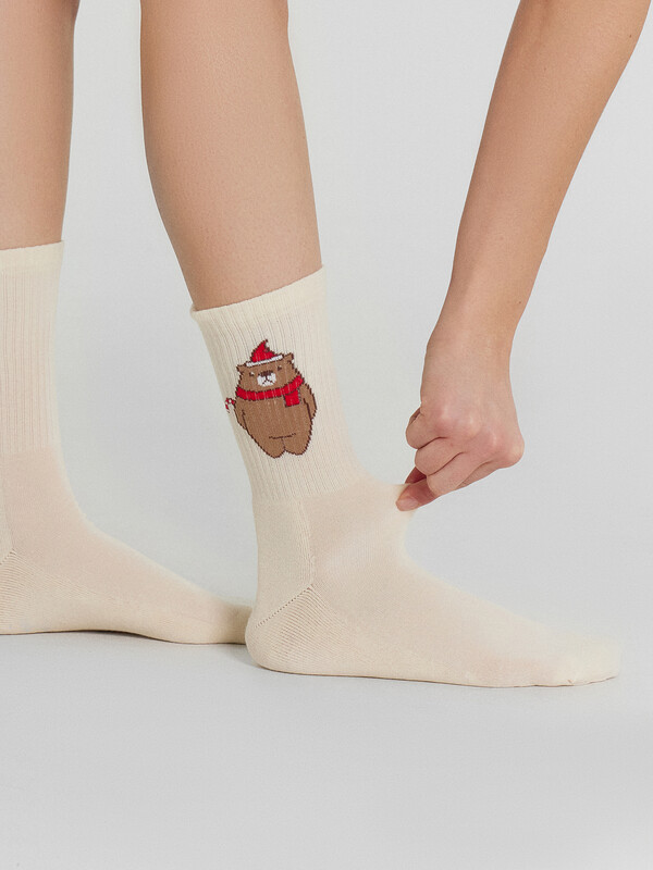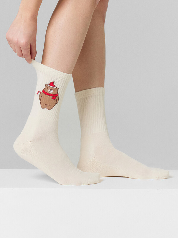 рис.2973 Женские носки с высоким плотным бортом, плюшевым следом и рисунком в виде мишки.