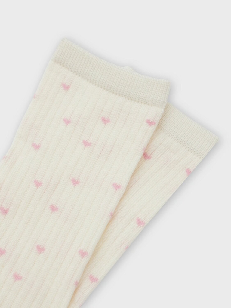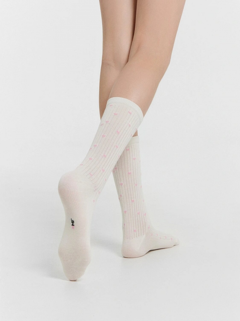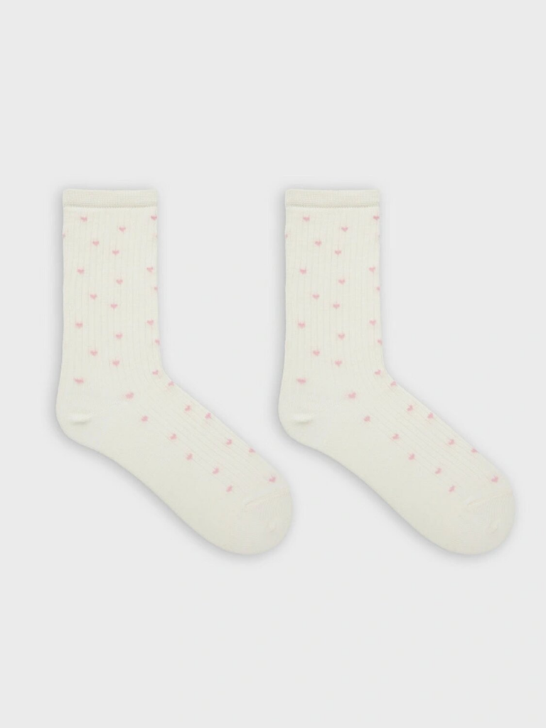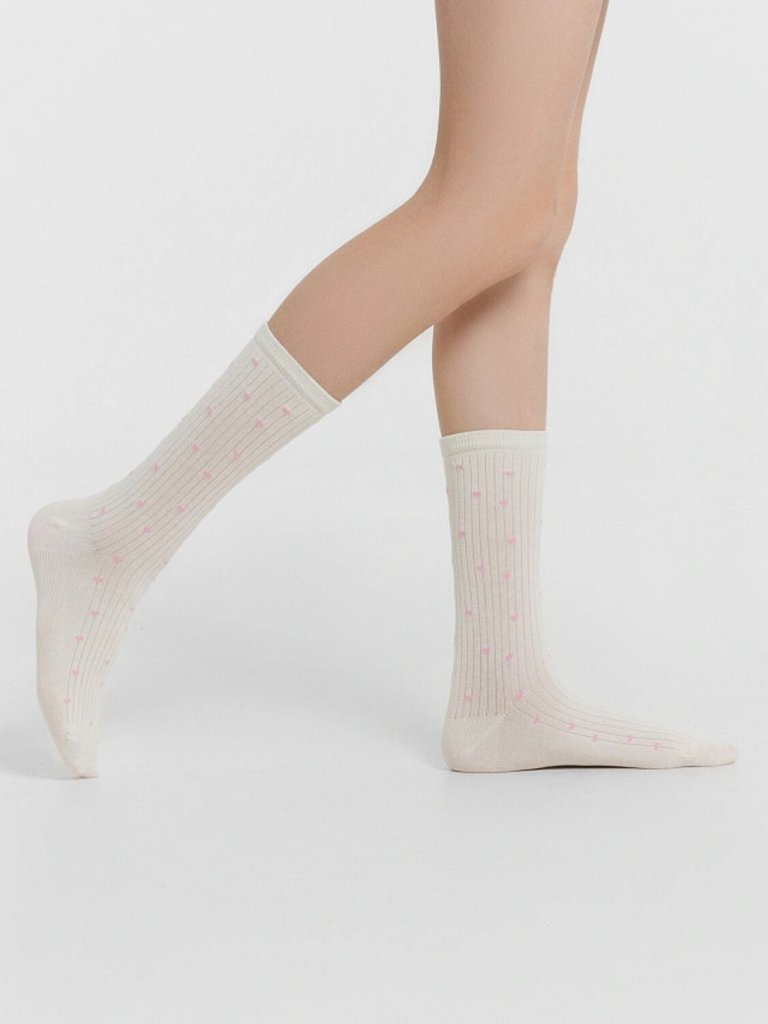 рис.3165 Детские классические носки выполненных перекидным переплетением (лапша) с рисунком в виде мелких сердечек.
