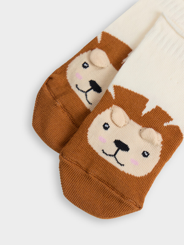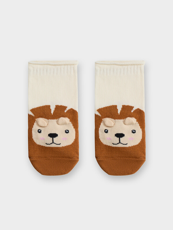 рис.2936 Детские гладкие носки без борта, с рисунком в виде тигренка и цветным мыском.