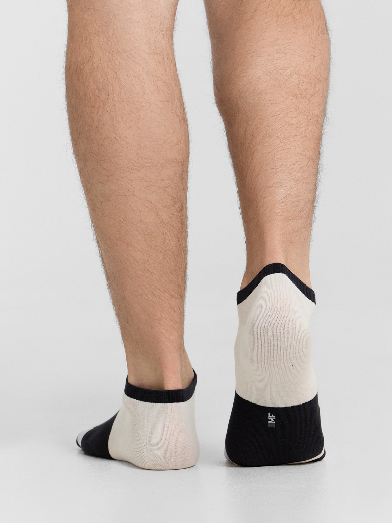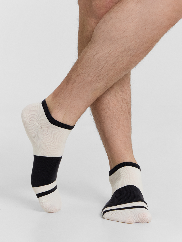 рис.3103 Укороченные мужские носки с рисунком в виде сочетаний полосок разного цвета.