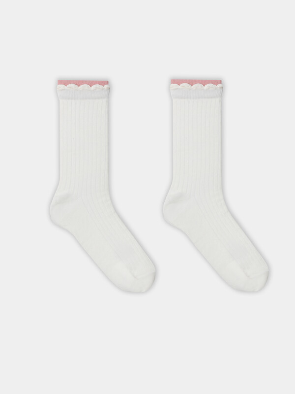 рис.3166 Детские классические носки выполненных перекидным переплетением (лапша) с с пикотом на борту.