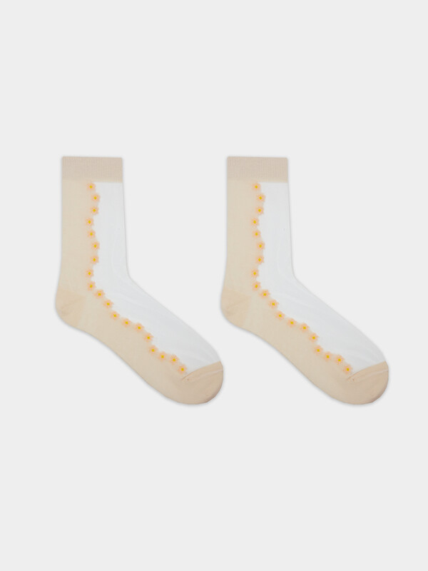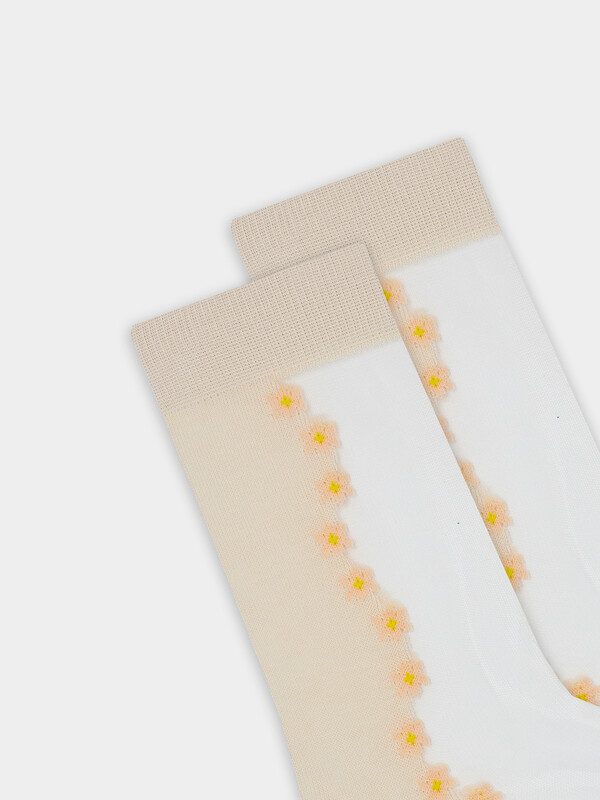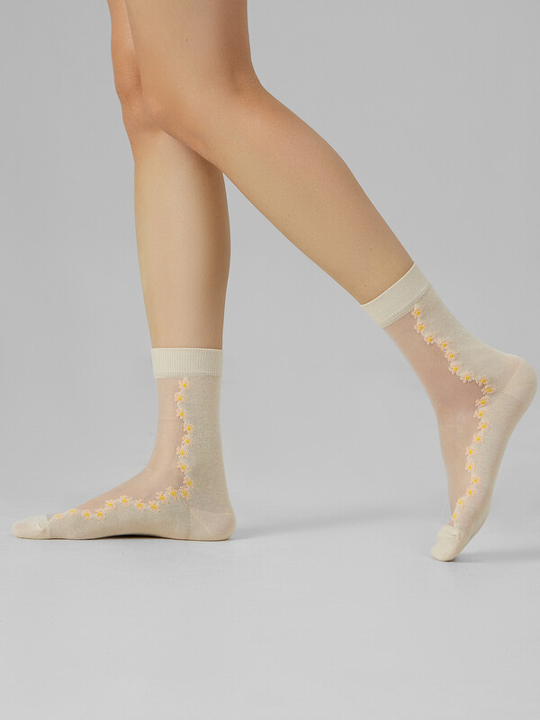 рис.3147. Женские носки классической длины с прозрачной зоной на паголенке и верхней части следа с рисунком в виде мелких цветочков.