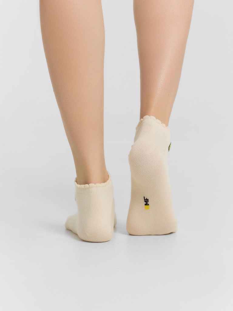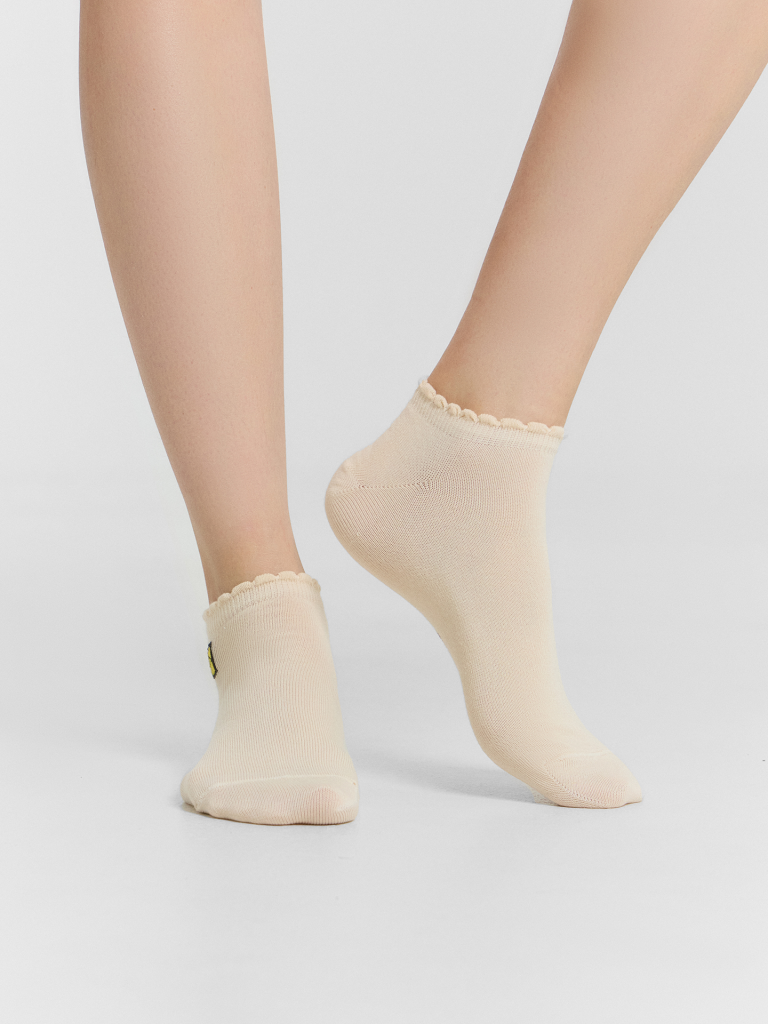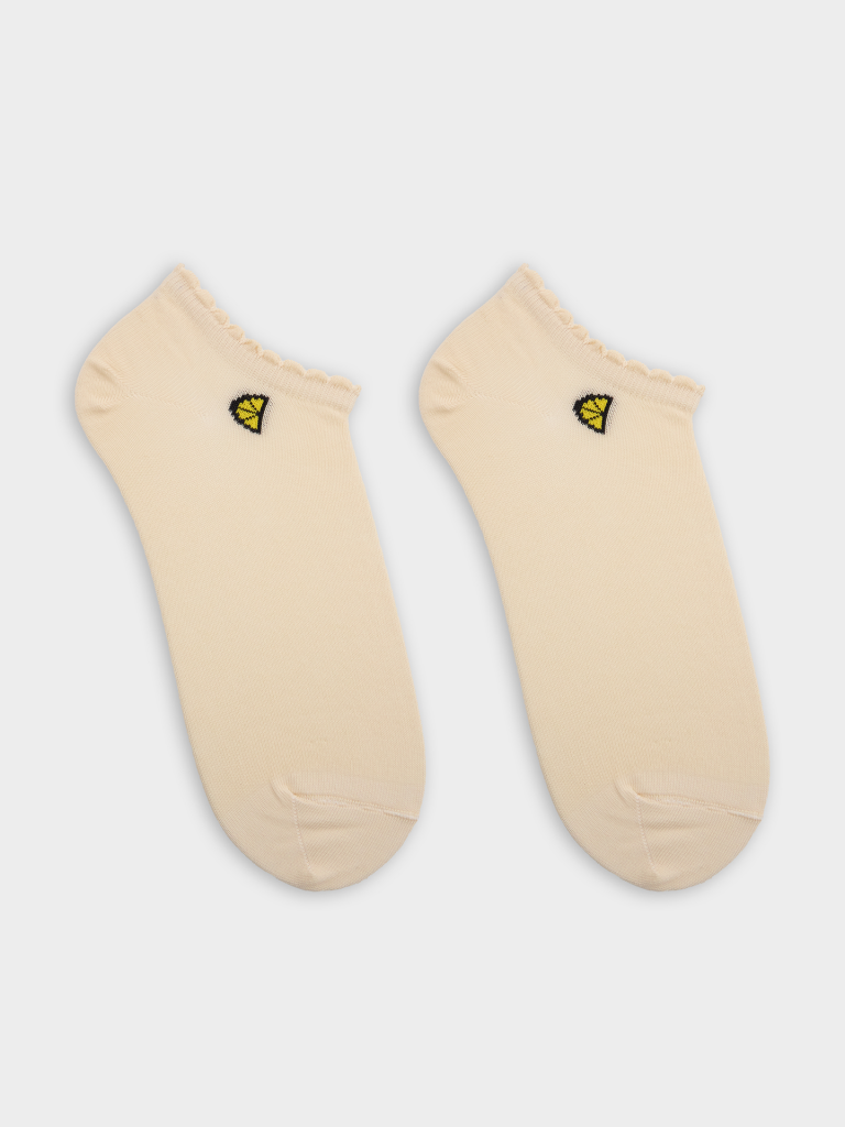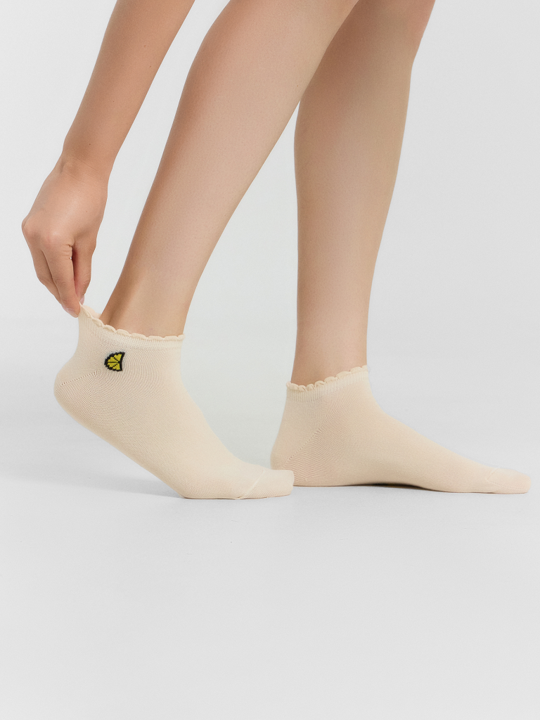 рис.1983 Женские носки укороченные с пикотом на борту и рисунком в виде дольки лимона.