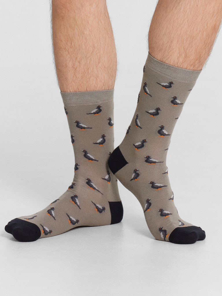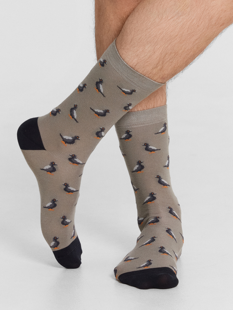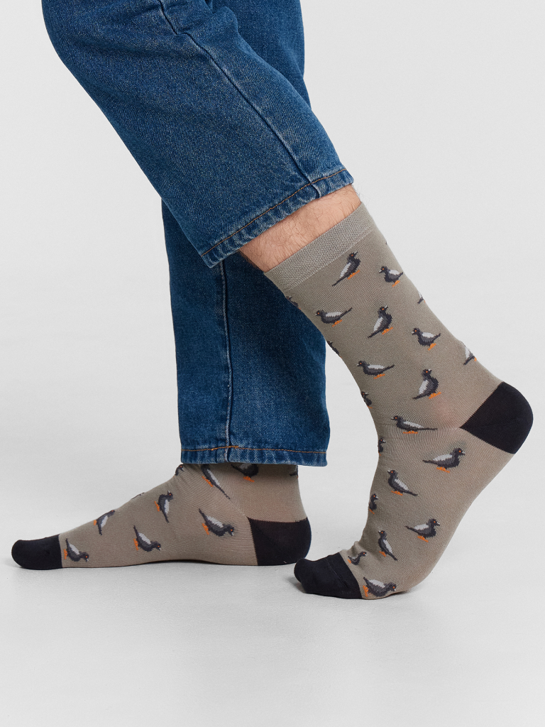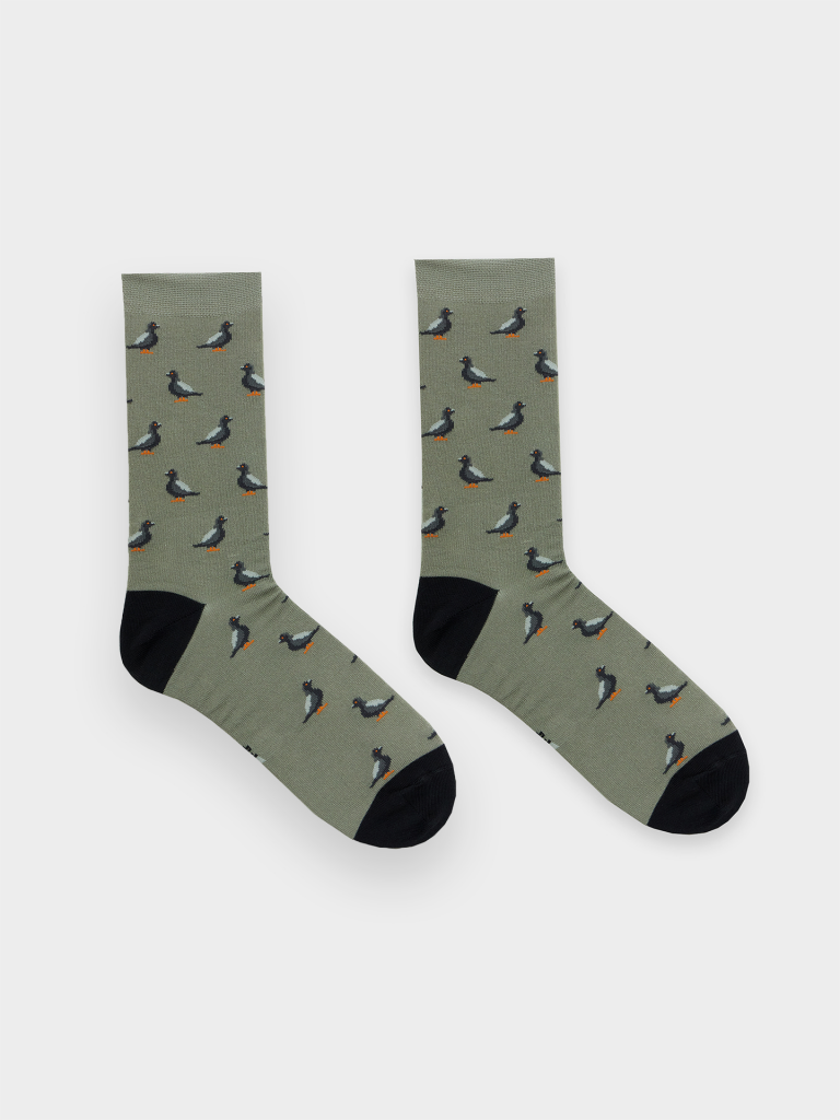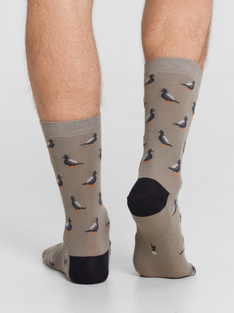 рис.2902 Мужской носок классический, высокий, с рисунком в виде голубей.