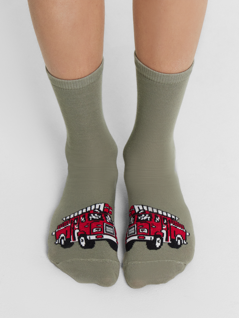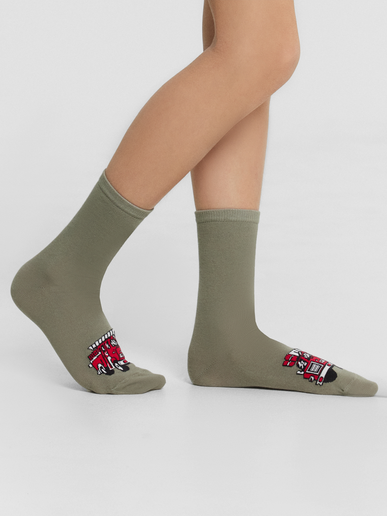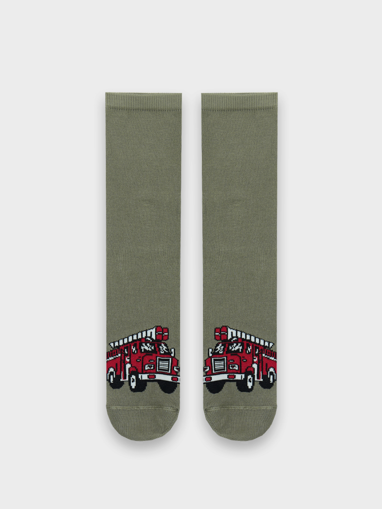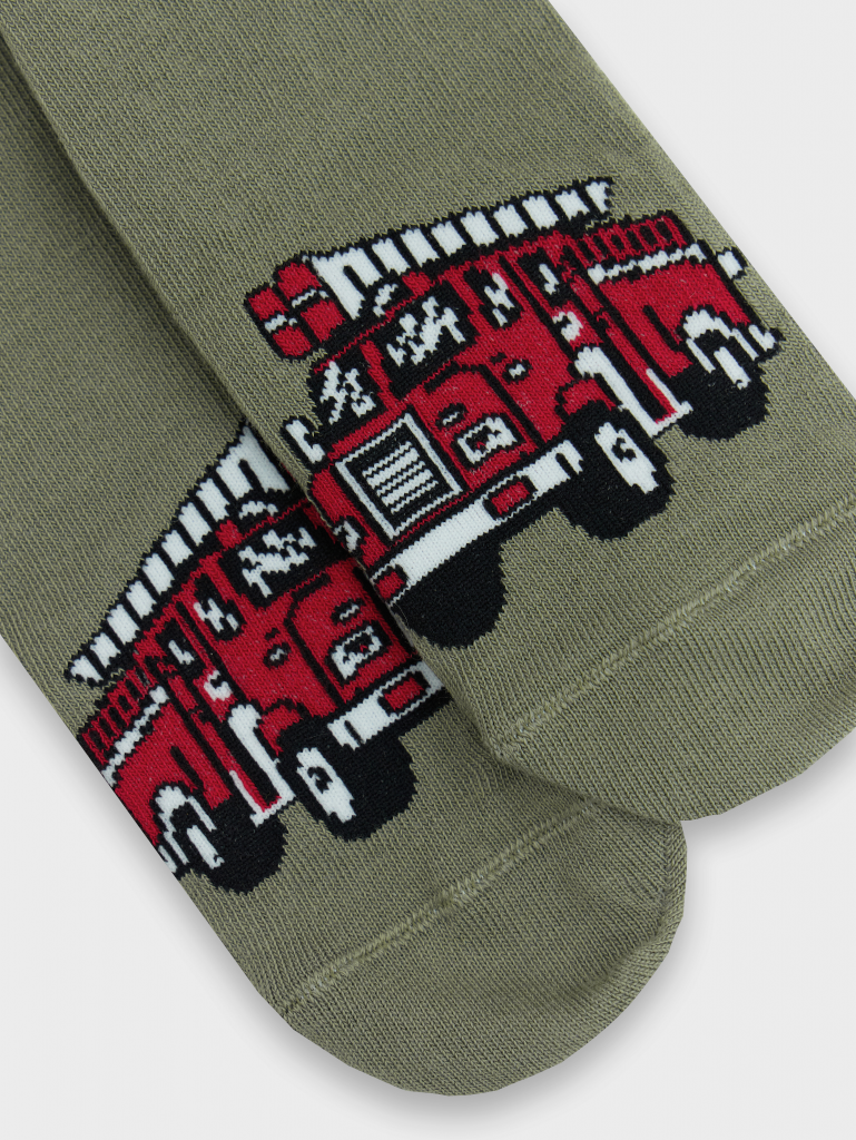 рис.3071 Детские классические носки с рисунком в виде пожарной машины.