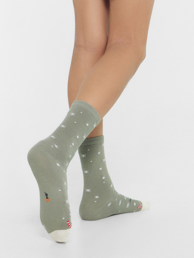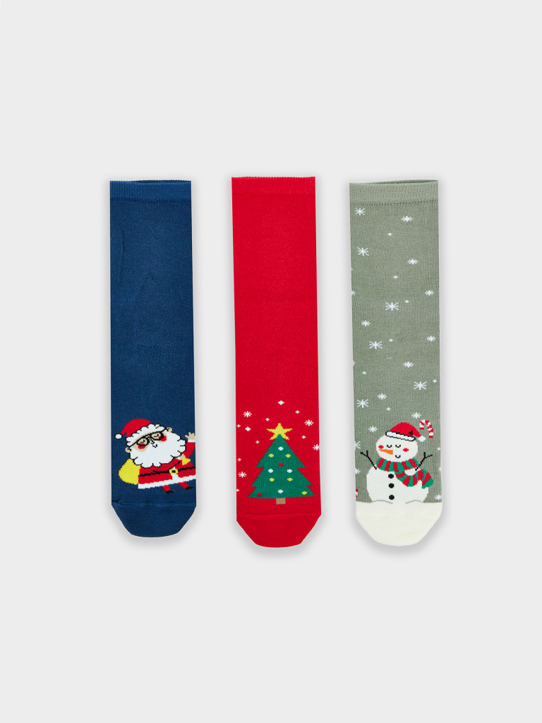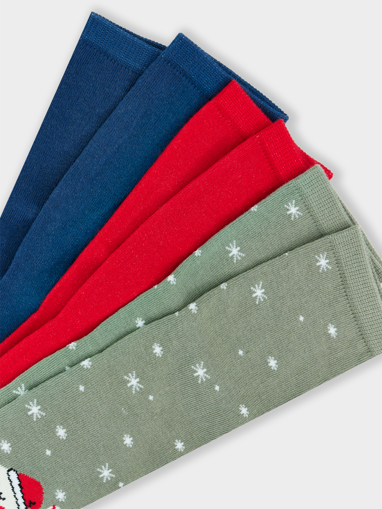 Новогодние детские носки из высококачественного хлопка с узорами. Натуральные волокна отлично пропускают воздух и впитывают влагу, дарят ощущение комфорта в течение дня. Благодаря небольшому количеству эластана в составе, носочки удобно сидят и не сползают, хорошо тянутся и легко надеваются. Пятка и мысок дополнительно укреплены для защиты от протирания. Резинка мягко, но надежно удерживает изделие, не оставляя на коже следов. Порадуйте ребенка оригинальными носочками от Mark Formelle! В наборе:3 пары.