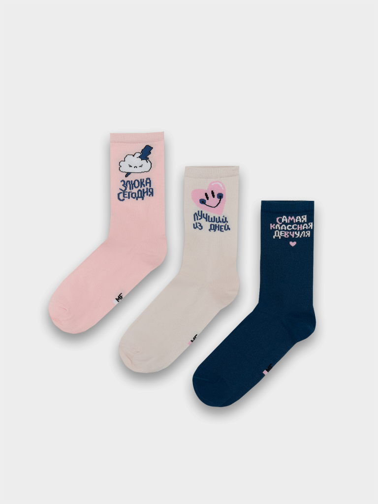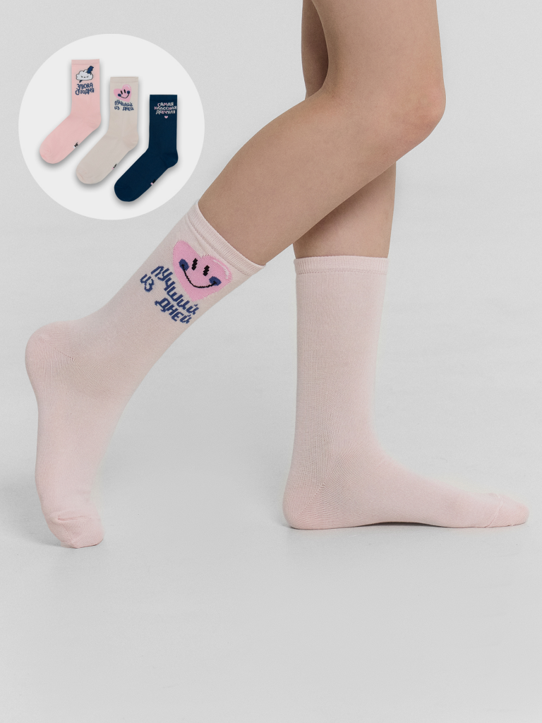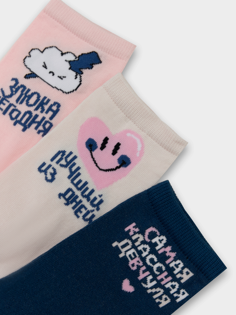 рис.3058 Мультипак из гладких детских носков с рисунком в виде милых надписей. Составляющие: 430A-3059 430A-3060 430A-3061