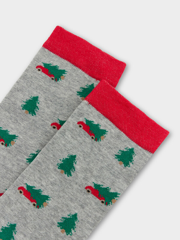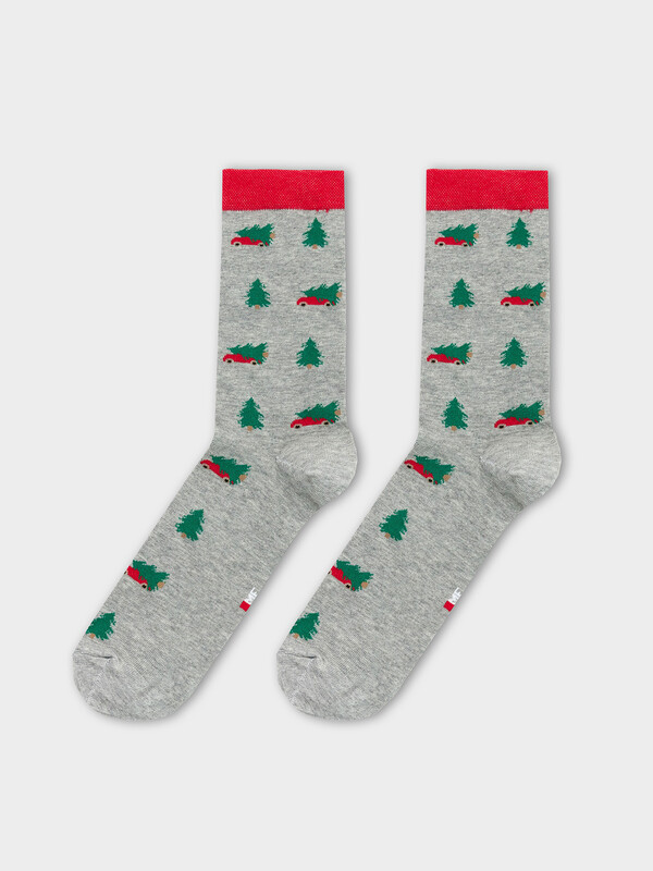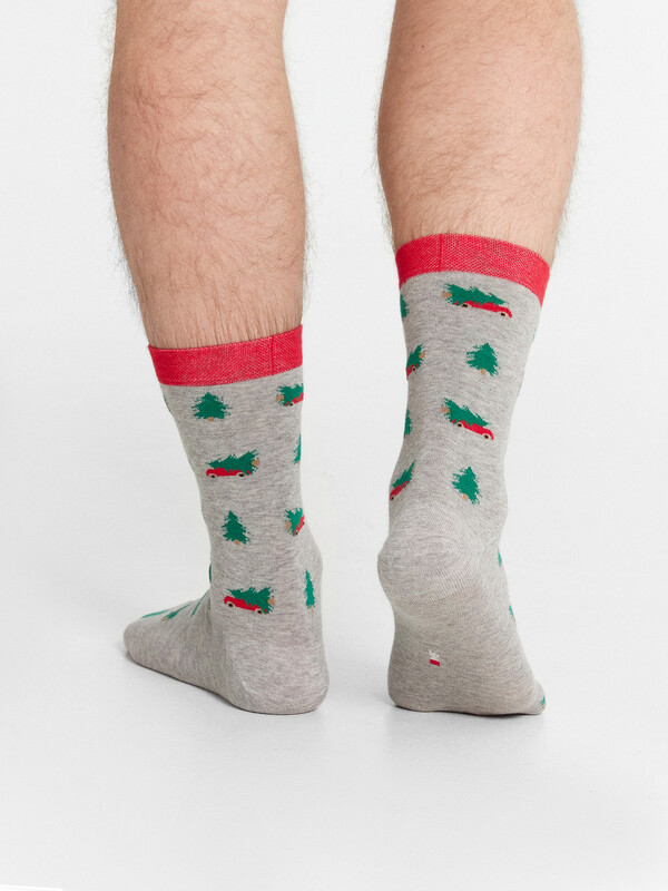 рис.2977 Мужской носок классический, высокий с рисунком в виде елок.