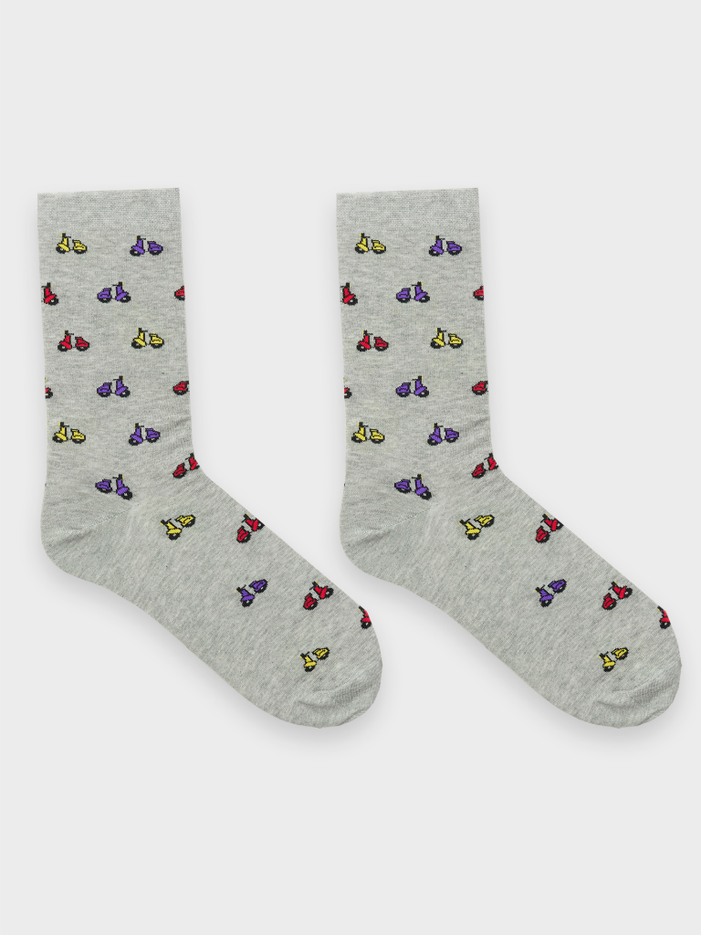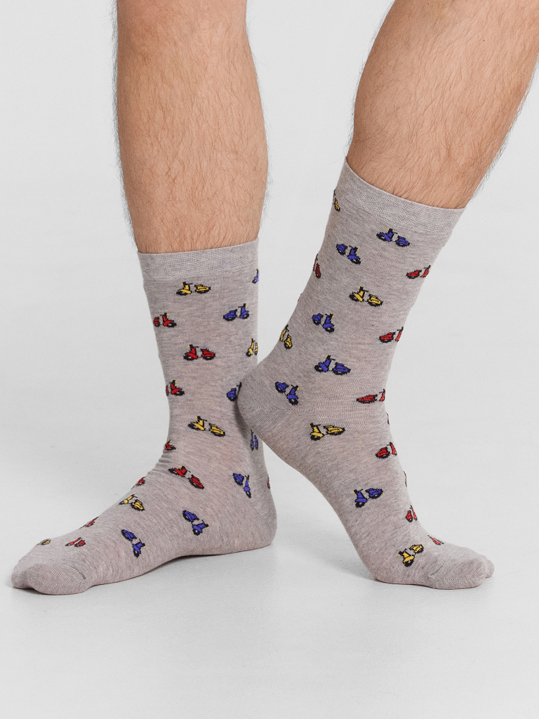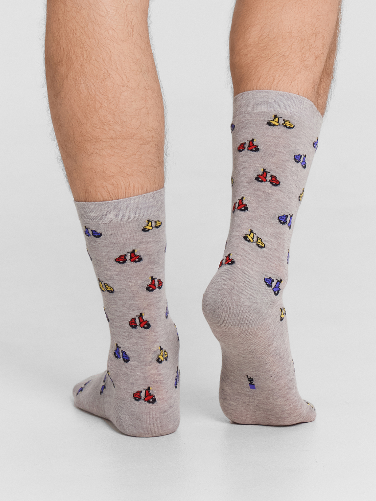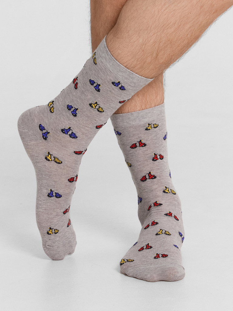 рис.3046 Мужской носок классический, высокий, с рисунком в виде мотоциклов.