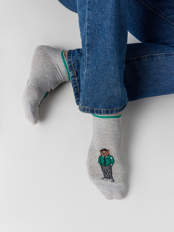 рис.3097 Суперкороткие мужские носки с рисунком в виде медведя.