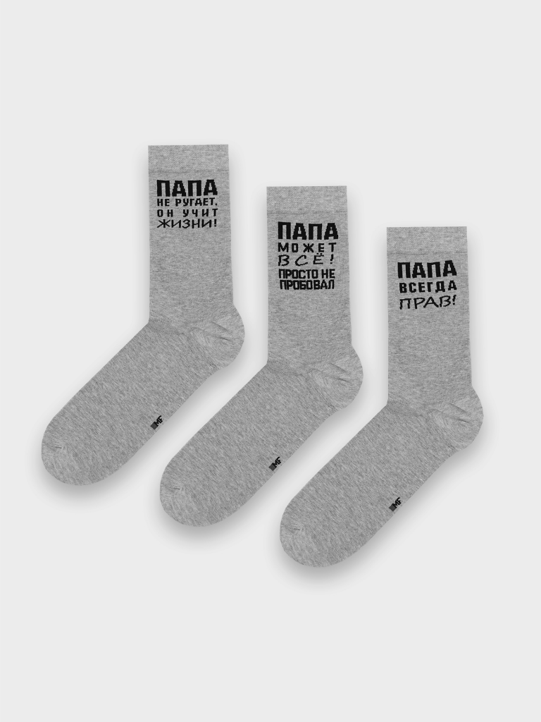 Мультипак их трех пар классических высоких мужских носков с рисунком в виде различных надписей. Плотные, качественные и комфортные носки из высококачественного хлопка, который отлично впитывает влагу, пропускает воздух и подходит даже для самой чувствительной кожи. Удобная резинка и плоские швы на мыске носка создают особый комфорт. Прекрасно переносят множественные стирки, сохраняют форму и цвет, устойчивы к изнашиванию. Идеально облегают ногу. Носки мужские от MF подходят для ежедневной носки, отлично сочетаются с вещами в гардеробе, дополнят любой образ: классический, спортивный, деловой. Такой набор мужских носков удачный и практичный подарок любимому мужчине, папе, парню или просто другу на любой праздник. Купите носки мужские от Mark Formelle, порадуйте любимых и близких практичными новинками. Красиво, стильно и удобно. Рекомендуем!