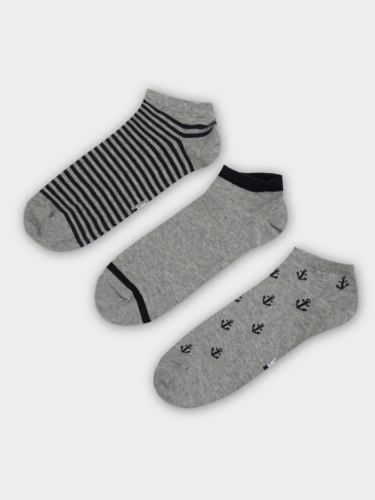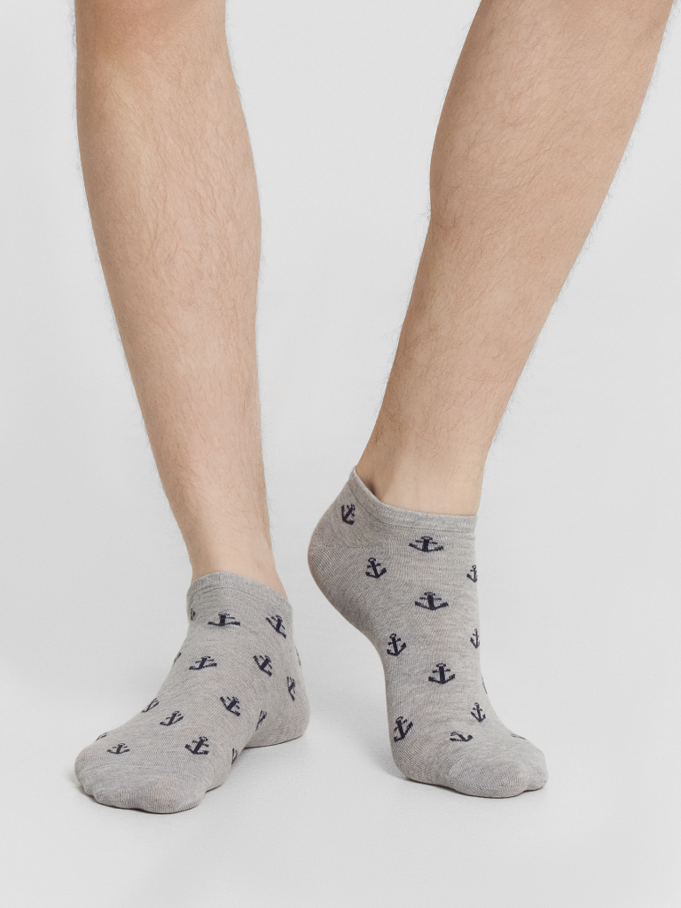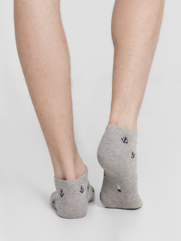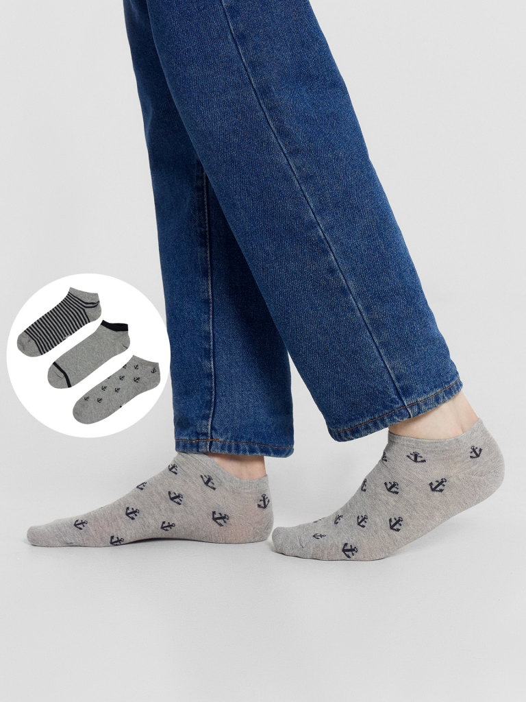 Мультипак из трех пар укороченных мужских носков с рисунками в виде якорей и полосок — отличная возможность внести разнообразие и поднять настроение в как в обычный день, так и в праздники. Изготовлены из гребенного хлопка - пряжи высочайшего качества, мягкой, тонкой, но прочной. Натуральные волокна отлично пропускают воздух, позволяя коже дышать, и впитывают влагу, дарят ощущение комфорта в течение всего дня. Благодаря небольшому количеству эластана в составе, носки хорошо облегают стопу и сохраняют форму даже после множества стирок. Мягкая эластичная резинка надежно удерживает носки на ноге, но не давит. Пятка и мысок дополнительно усилены, что гарантирует защиту от протирания и повышенную износостойкость — мужские носки с принтом прослужат долго. Лучший выбор на каждый день. Рекомендуем!
