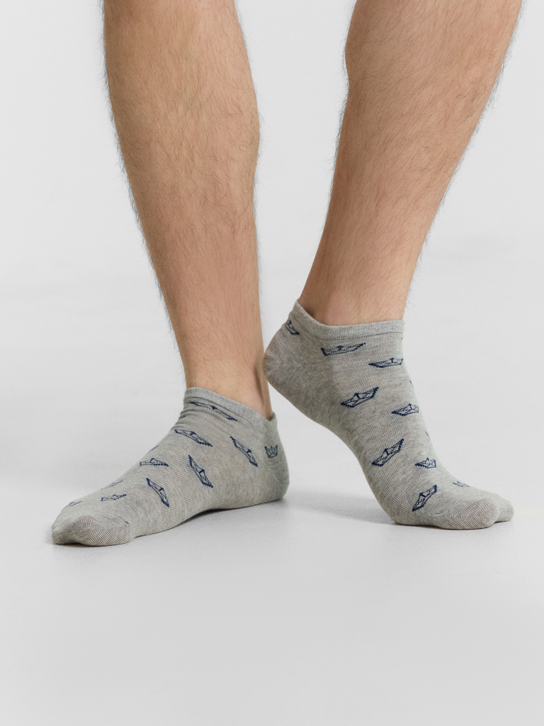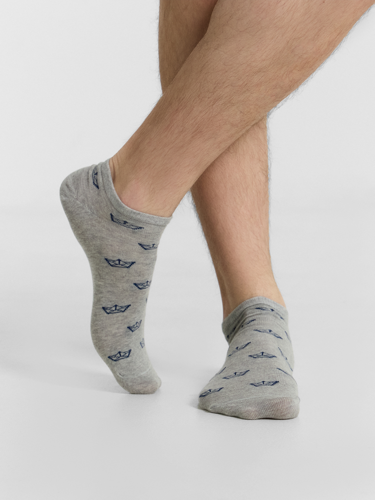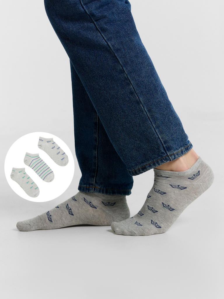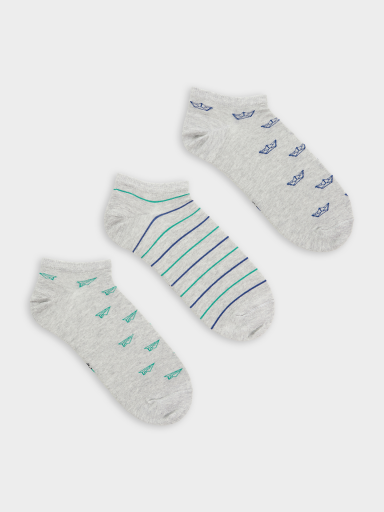 рис.2736 Мультипак из трех пар укороченных мужских носков с рисунком в виде оригами-самолетиков, корабликов и полосок.
