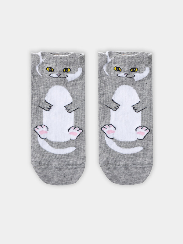 рис.3185 Детский укороченный носок с рисунком в виде котика.
