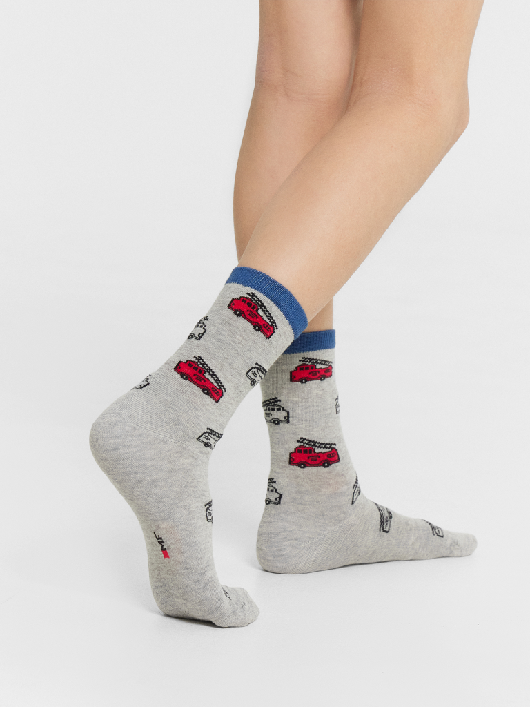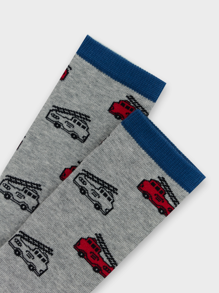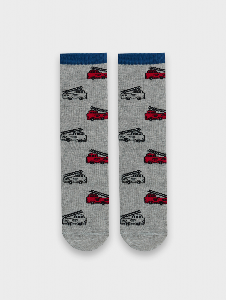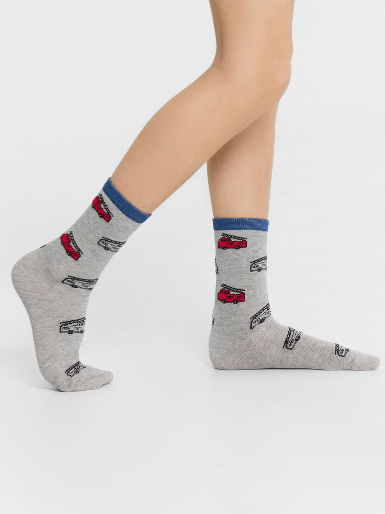 рис.3070 Детские классические носки с рисунком в виде машинок с цветным бортиком.