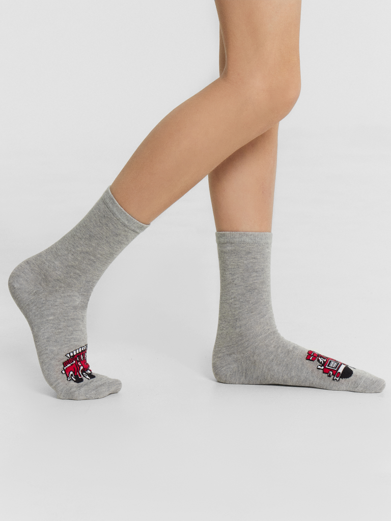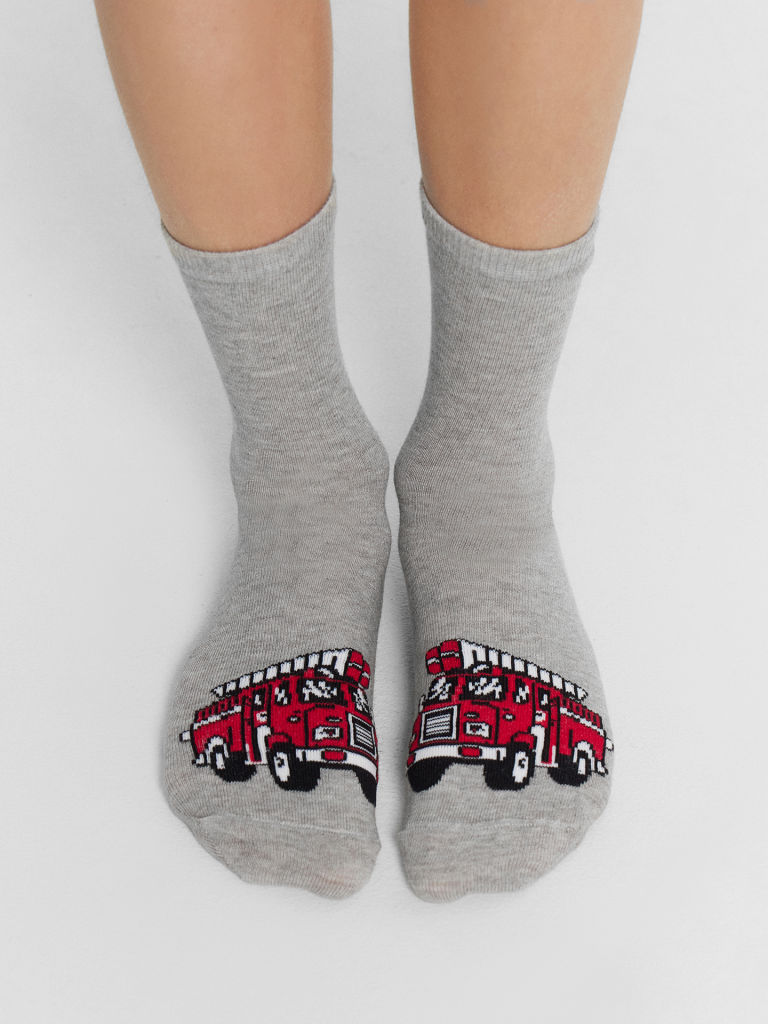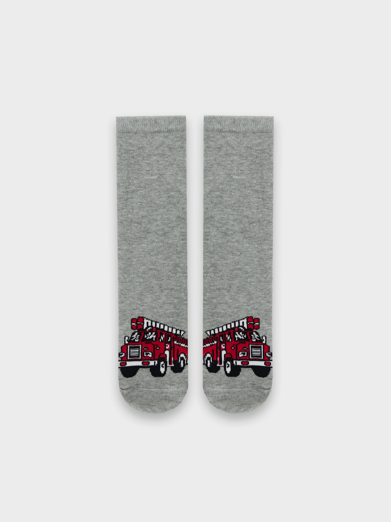 рис.3071 Детские классические носки с рисунком в виде пожарной машины.