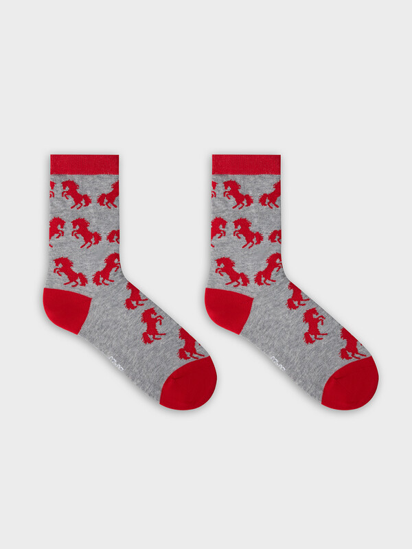 Рис.3450 Носки унисекс, классические с рисунком в виде лошадей.