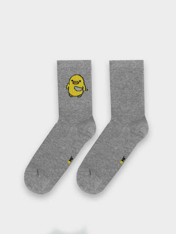 рис.2880 Носки высокие с плотным бортом и рисунком в виде надписи цыпленка.