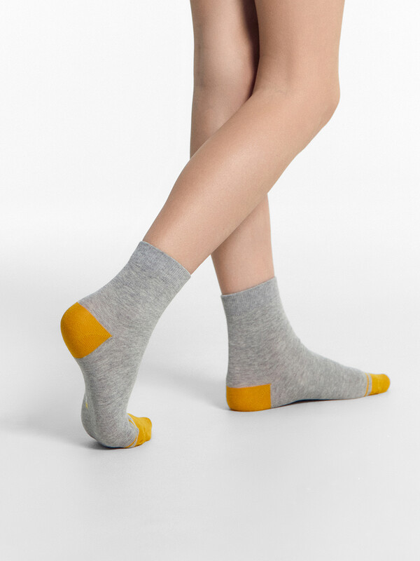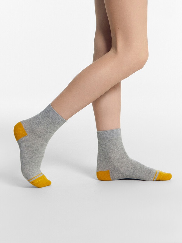 Носки детские из высококачественного хлопка с рисунком в виде полоски в цвет пятки и мыска. Натуральные волокна отлично пропускают воздух и впитывают влагу, дарят ощущение комфорта в течение дня. Благодаря небольшому количеству эластана в составе, удобно сидят на ножке и не сползают, хорошо тянутся и легко надеваются. Пятка и мысок дополнительно укреплены для защиты от протирания. Резинка мягко, но надежно удерживает носки, не оставляя на коже следов. В ассортименте Mark Formelle можно выбрать самые разнообразные дизайны и расцветки: однотонные зеленые, желтые, синие или серые детские носки подойдут и для мальчика, и для девочек, найдутся модели в полоску, с оригинальными авторскими рисунками, орнаментами, а также базовые детские носки белые и черные. Маленьким модникам они точно понравятся!