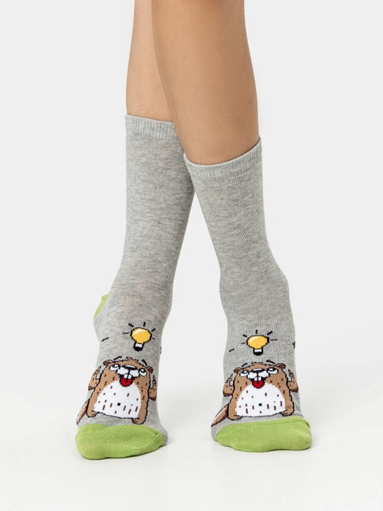 рис.1346 Детский носок гладкий с рисунком в виде сурка вторник.