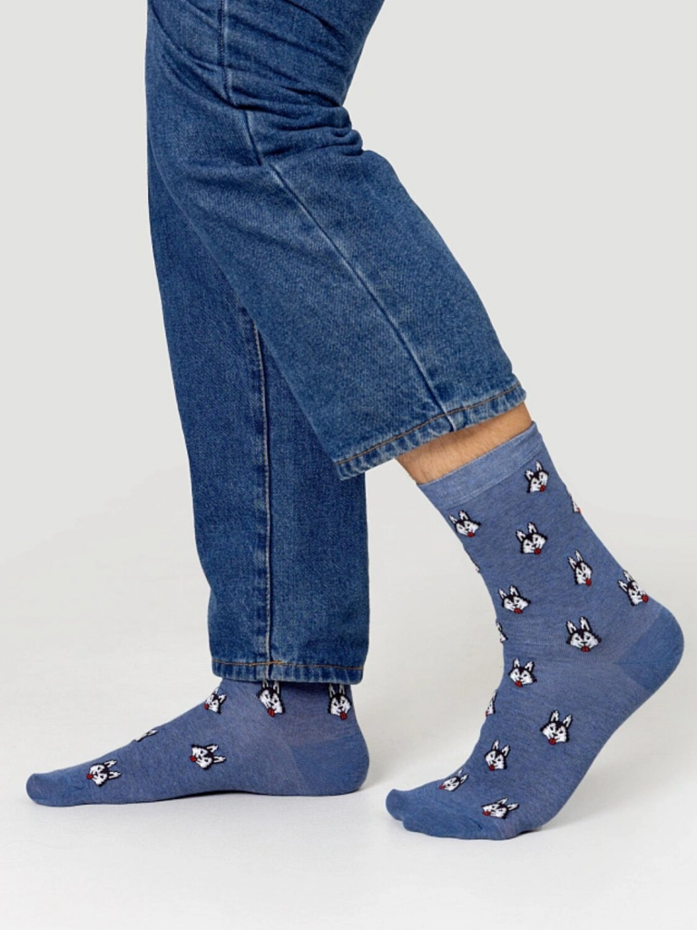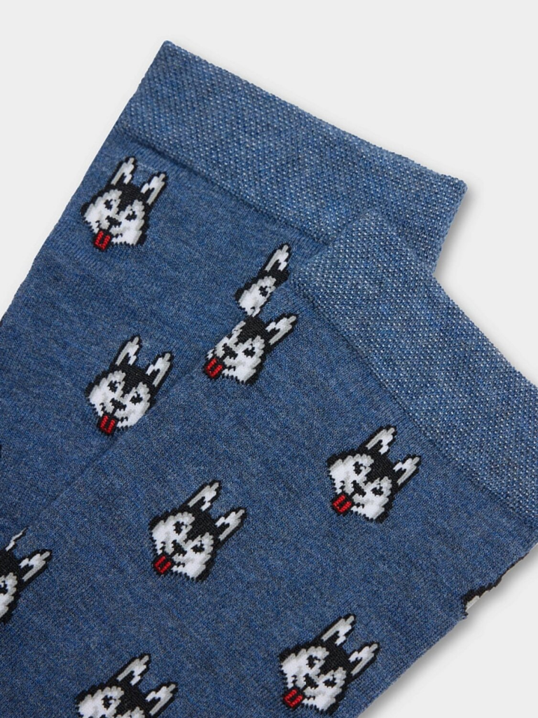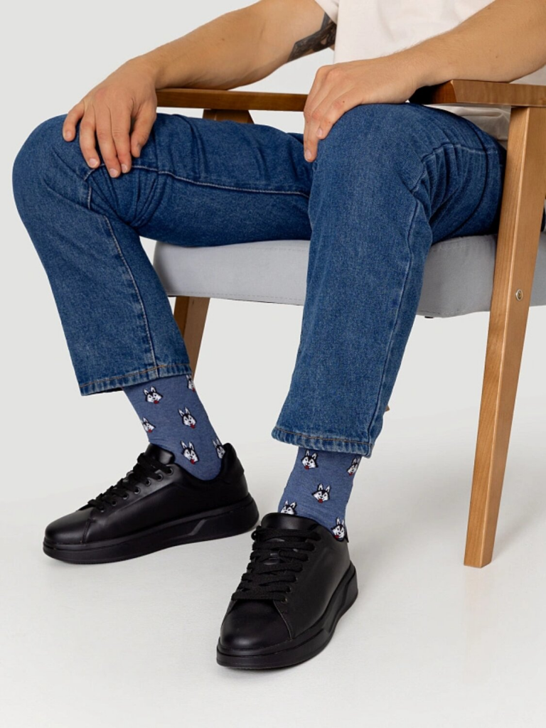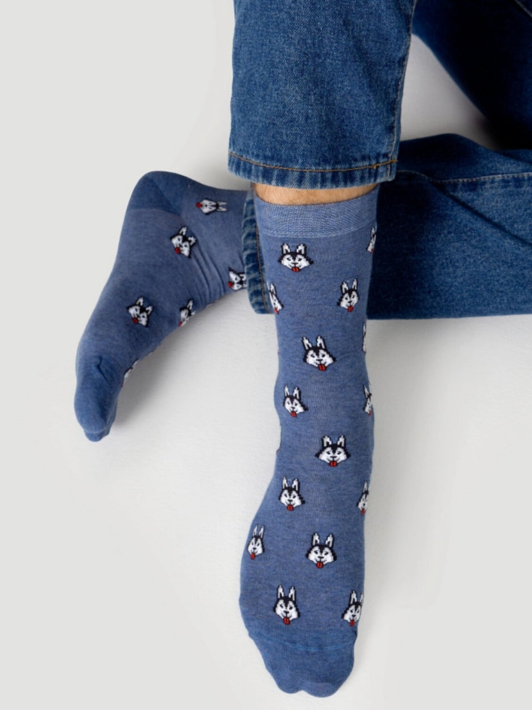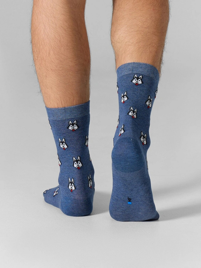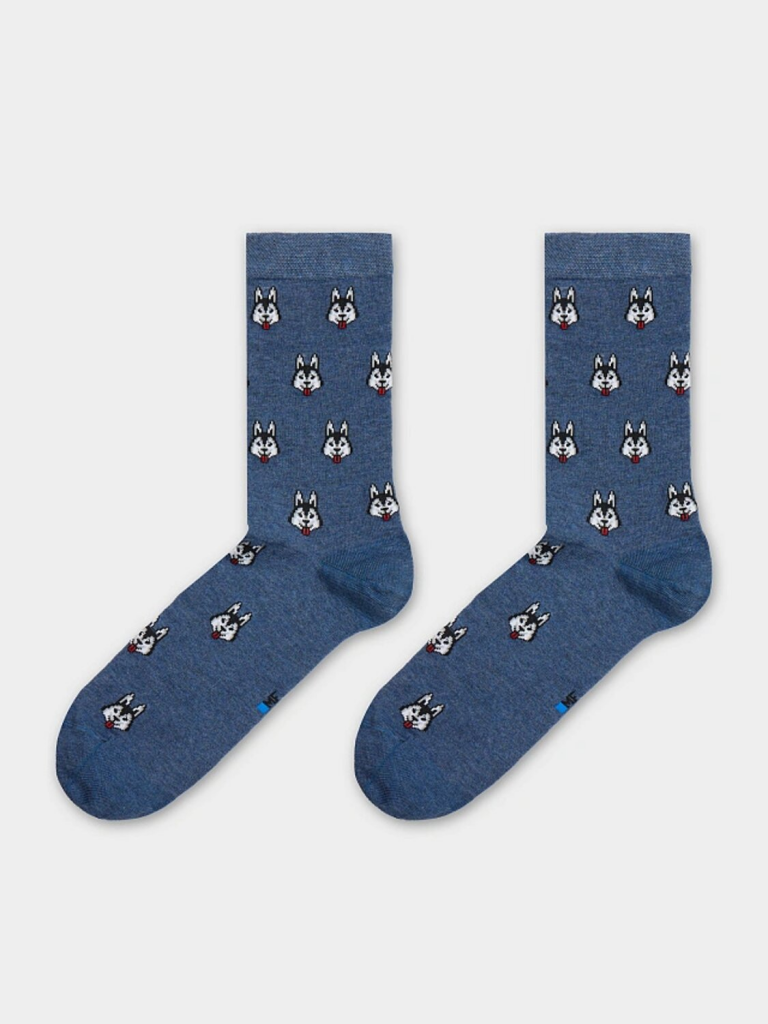 рис.3088 Мужской носок классический, высокий, с рисунком в виде хаски.